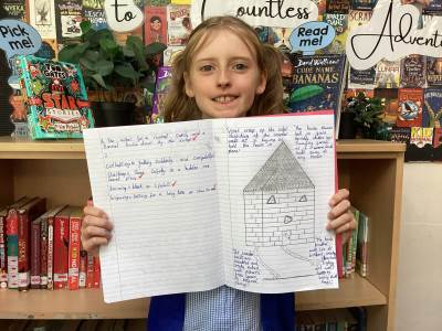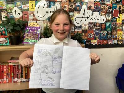 After reading the prologue together, the children put their comprehension skills to the test by answering questions and discussing their first impressions of the story. They then moved on to a creative task, sketching the house and labelling it with descriptions taken directly from the text. This was a fantastic opportunity to combine reading with art, and the results were both imaginative and impressive.