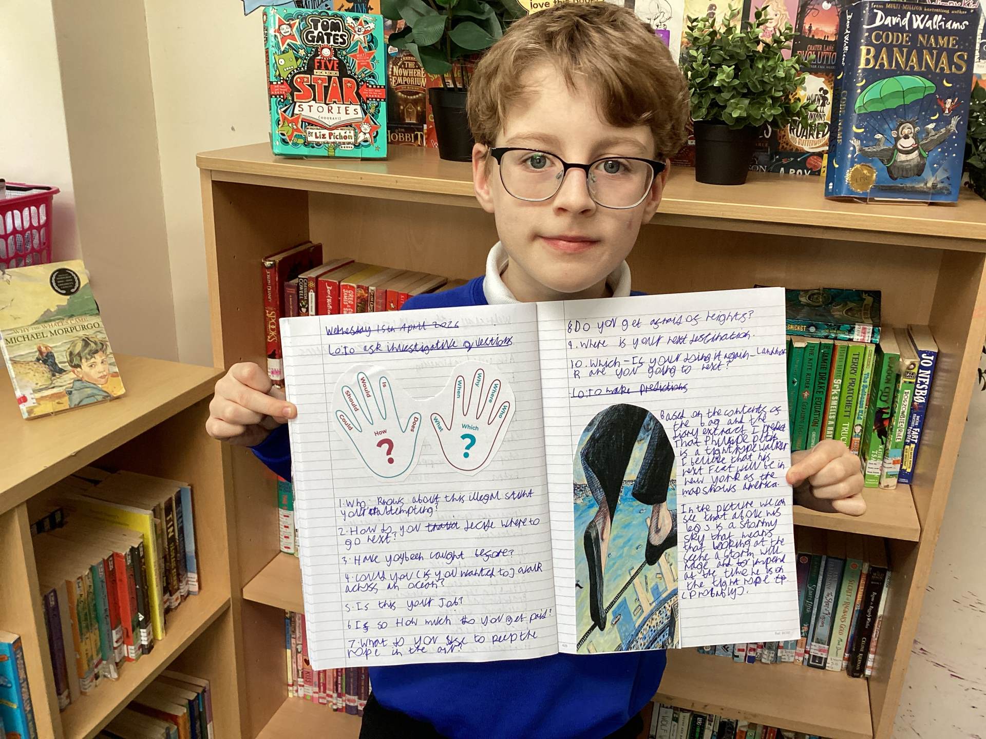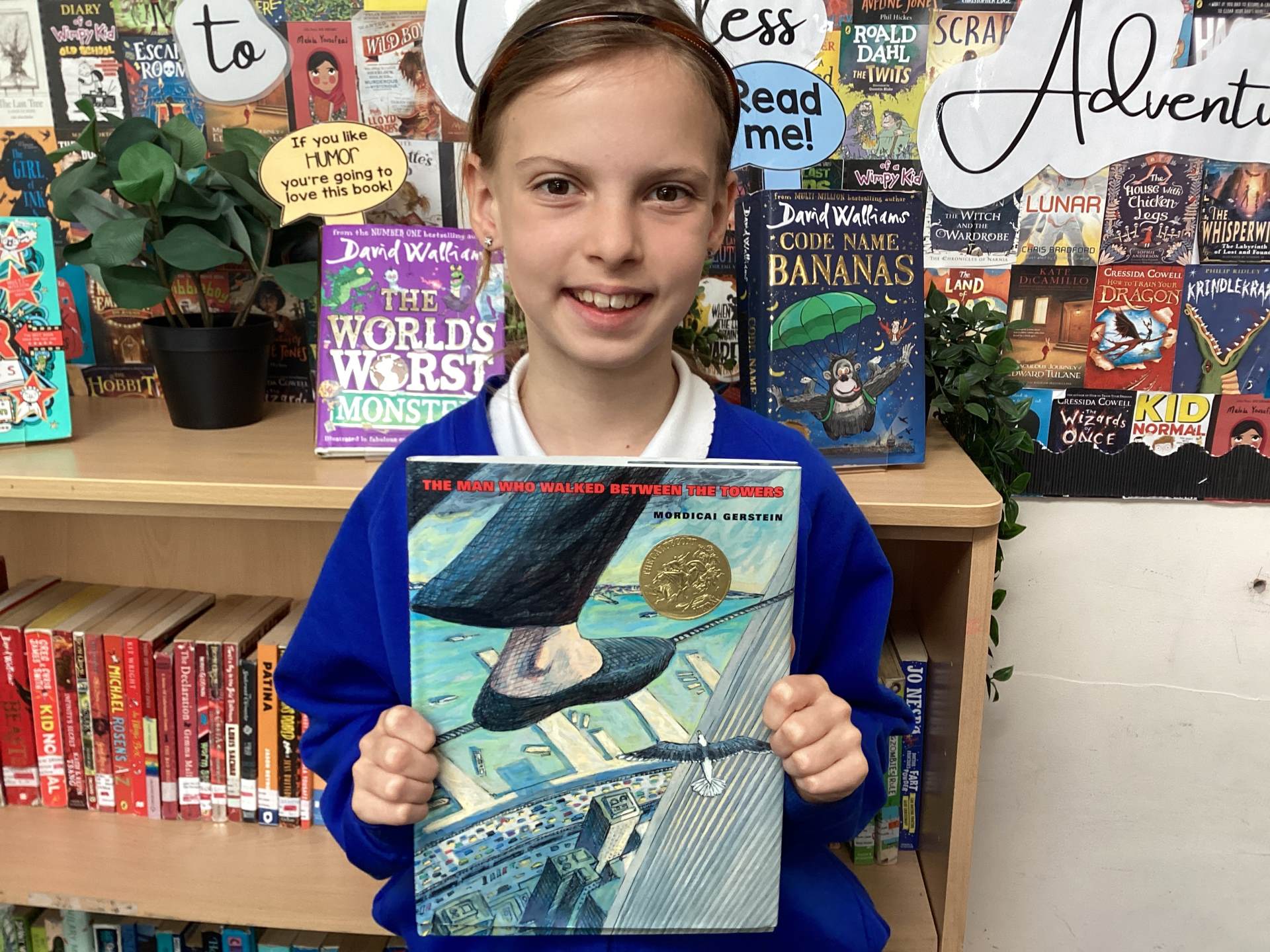 When we finally looked at the front cover of The Man Who Walked Between the Towers by Mordicai Gerstein, the class was amazed to discover that Mr Petit was a tightrope walker. Their astonishment grew even more when they realised the story is based on a true event.