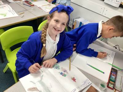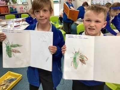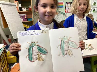 This week in art the children have continued exploring materials and techniques, refining lines, shading and expression as well as studying famous scientific artists. The children used a layering technique to build up their beetle picture and add depth as well as adding texture by shading and dotting their work.