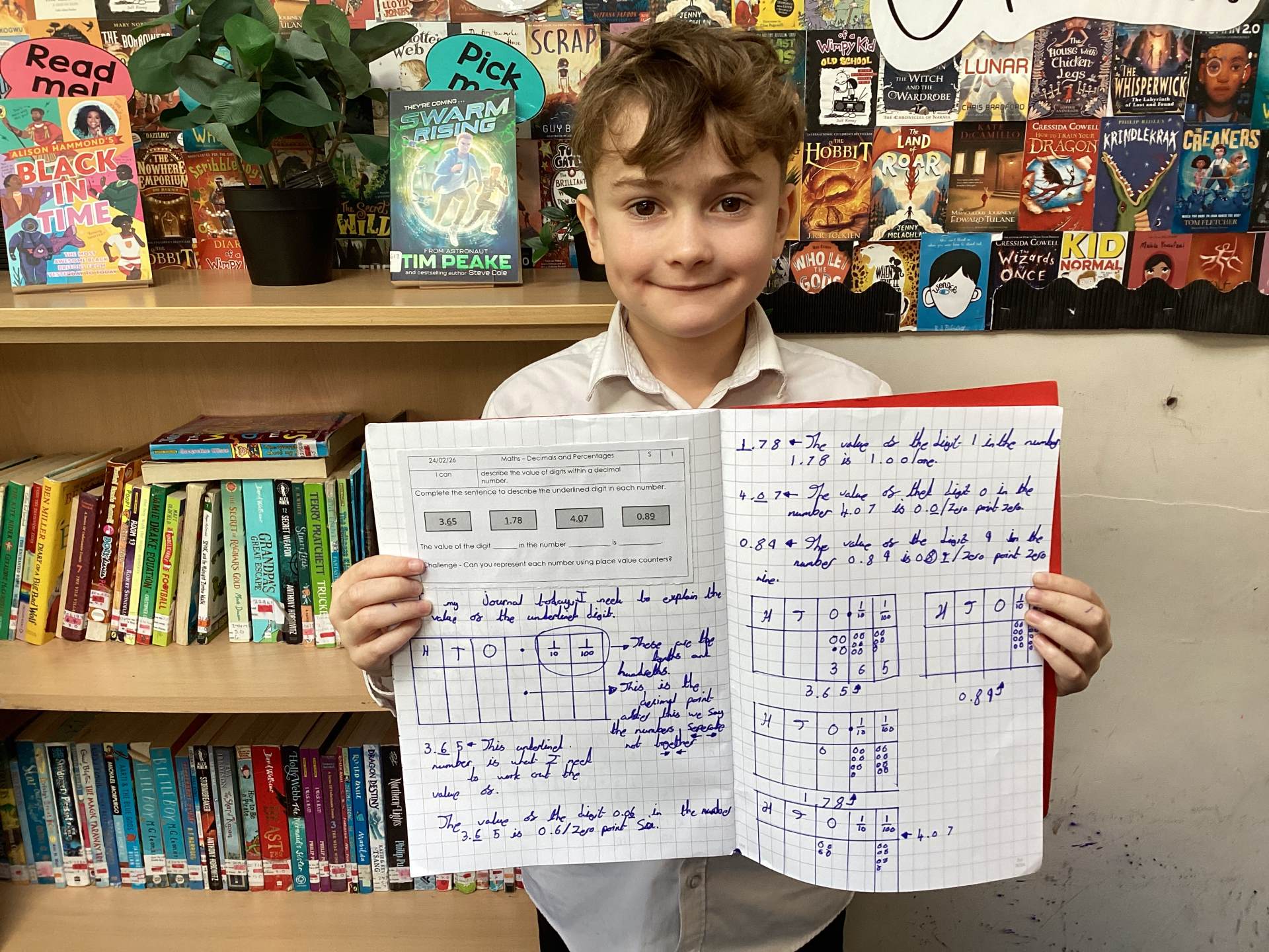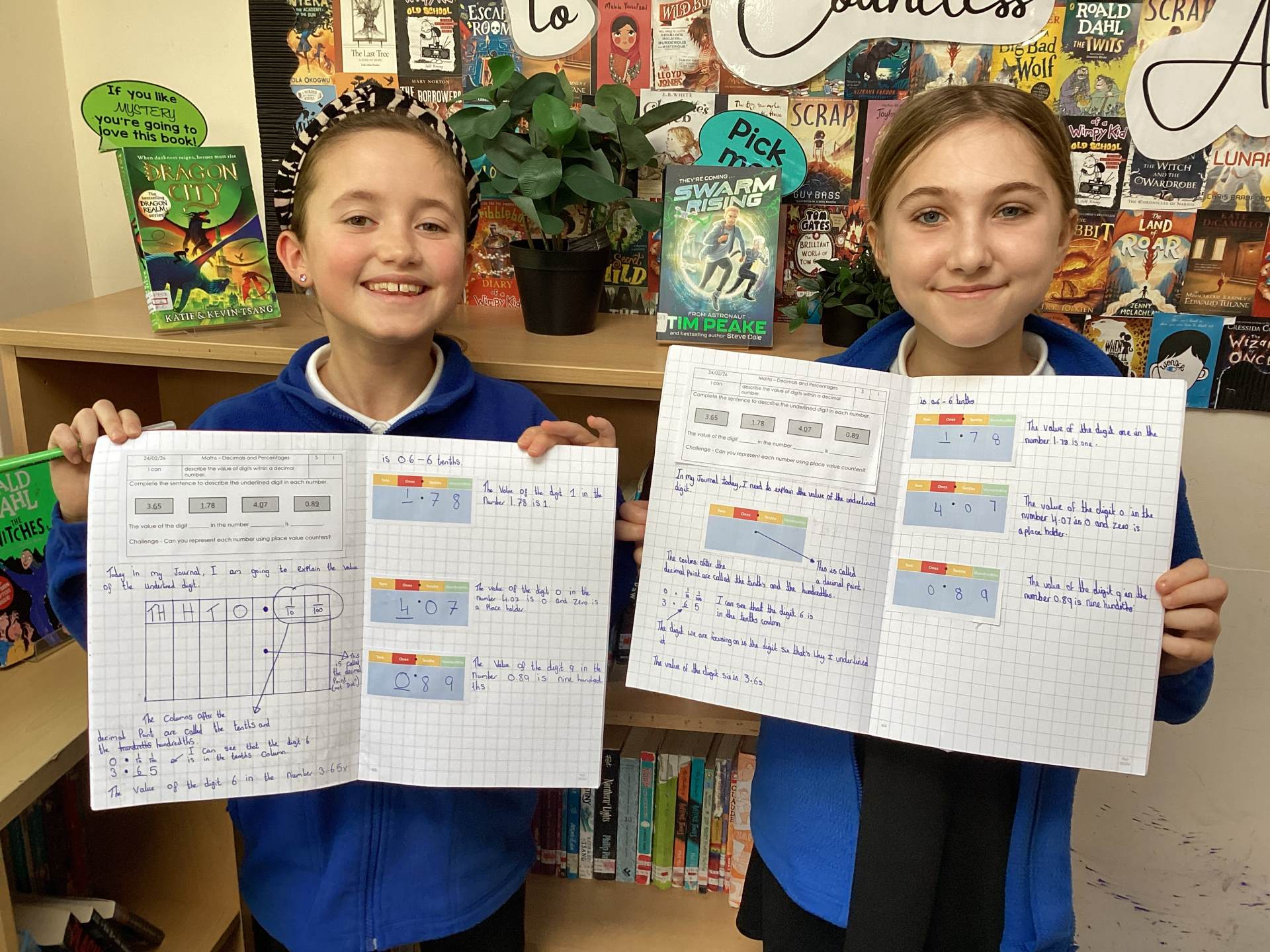 Today’s journaling was EXCELLENT. The pride in presentation, the depth of explanation and the clear reasoning really showed how quickly the children are grasping what can be tricky mathematical concepts. Many pupils used diagrams, place value charts and fraction links to prove their thinking. Some even challenged themselves with their own decimal examples and explained them step by step.