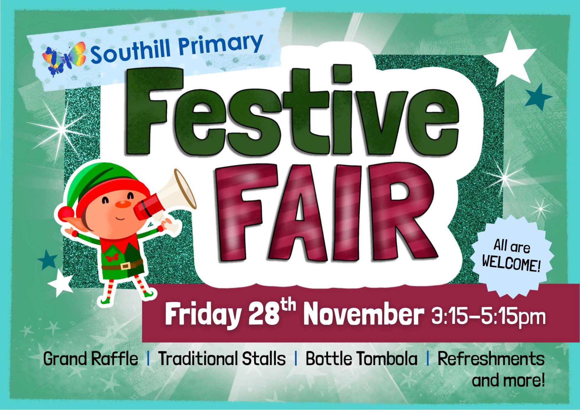 ️The Southill Primary 𝐅𝐞𝐬𝐭𝐢𝐯𝐞 𝐅𝐚𝐢𝐫 takes place on Friday 28th November, 3:15-5:15pm!