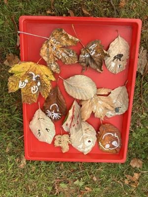 We went on a welly walk to see how the trees are changing. The children were so excited to spot colourful leaves, shiny conkers, and swirling sycamore seeds! We collected some special leaves to bring back to school and used them to paint with and create our own fantastic leaf people.