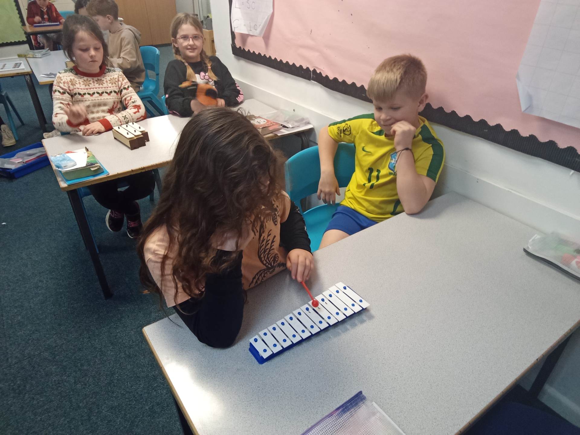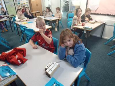 In music this half term, we have been using a glockenspiel. A glokenspiel is a percussion instrument with bell-like tones. It’s often used in orchestras and bands. It adds a clear, sparkling sound to melodies.