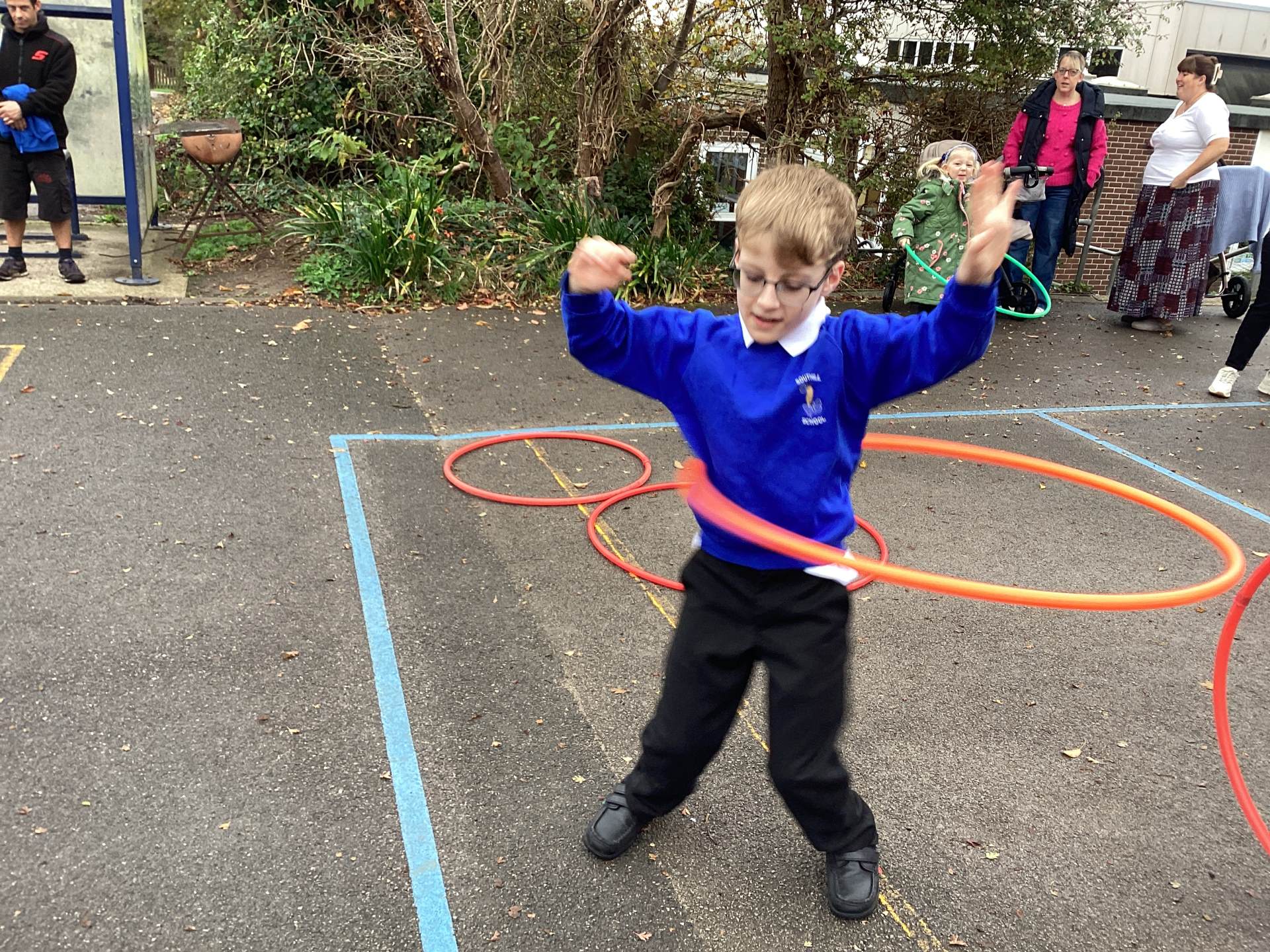 This morning the weather stayed kind, which meant Southill Primary School could wheel out the speaker, open the PE cupboard doors and welcome the children onto the playground for a fantastic hula-hooping session. It was brilliant to see so many children outside, smiling, moving and enjoying being active together.