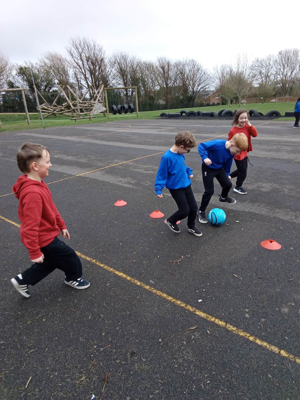 In the photos you can see the children practising scoring using different equipment and working in pairs and teams on attacking and defending. We have enjoyed lots of different games and activities over the half term to develop these skills. Some of the games we played were