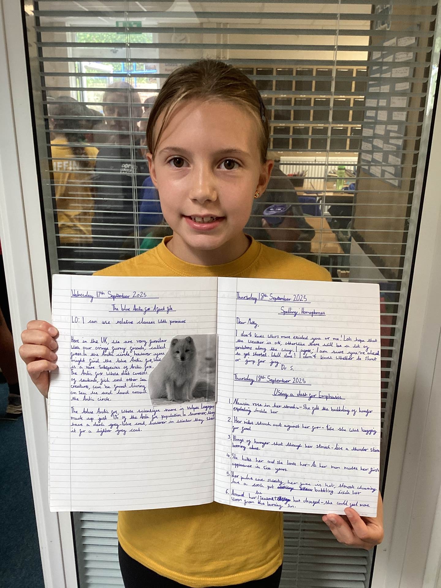 Throughout this engaging unit of writing, Year 6 are combining a lot of skills such as relative clauses and pronouns, formal and informal language, emotive adjectives, advanced sentence structure with devices such as dashes, and modal verbs. They are producing fact files, diary entries, letters and eventually they will write a large blog from Leila's point of view. Well done, year 6!