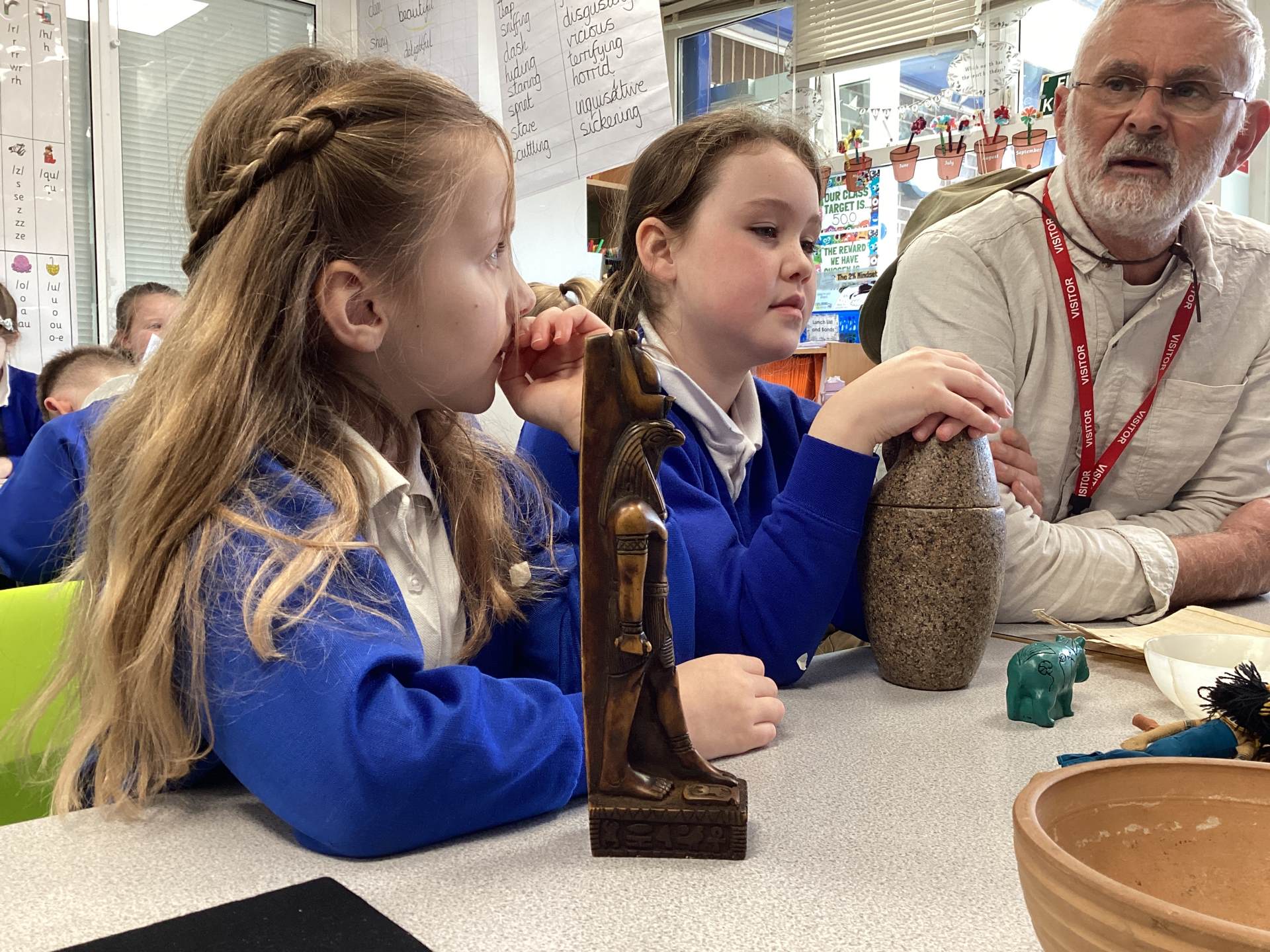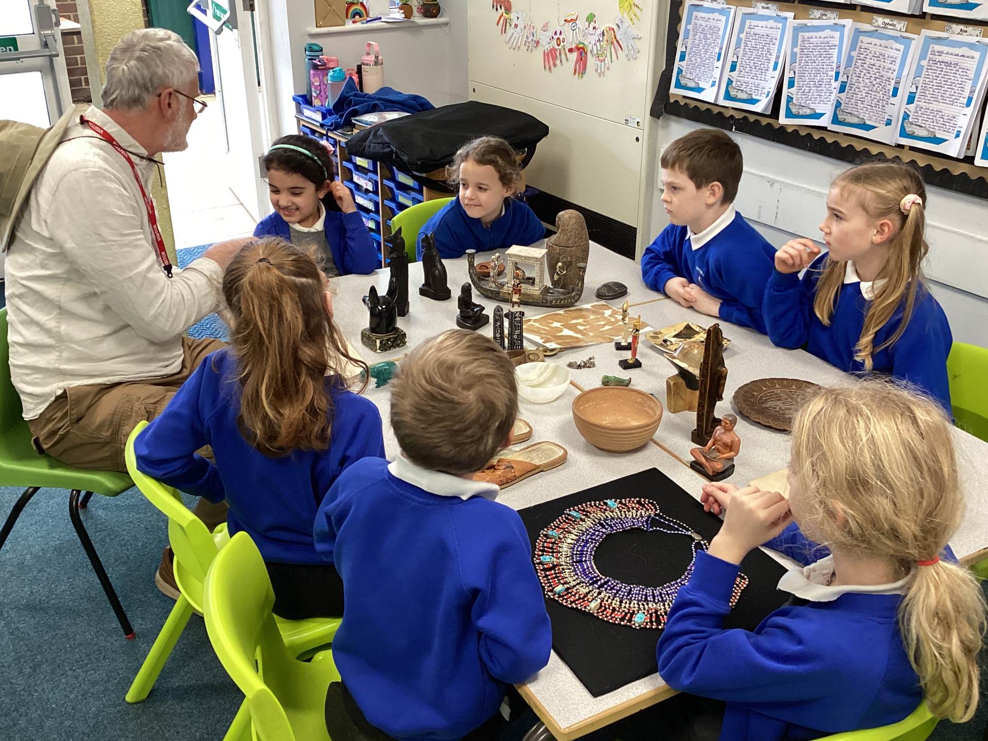 Year 3 started off Spring 2 term with an immersive day with Neil the Time Traveller. The children were transported back to ancient Egypt where they discovered how the ancient Egyptians lived and the roles they had in society. The children looked at artefacts, asked fascinating questions and sketched a mask that would have been painted and put over someone's face.