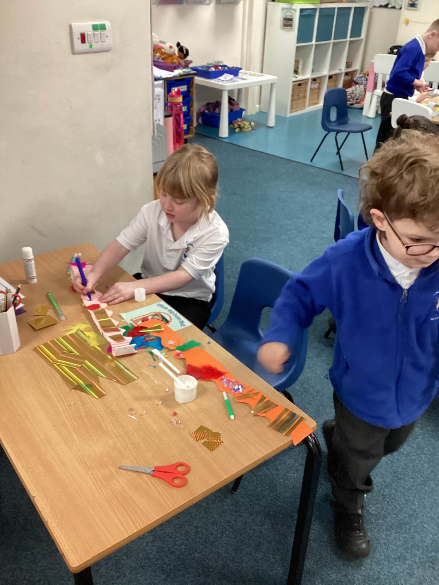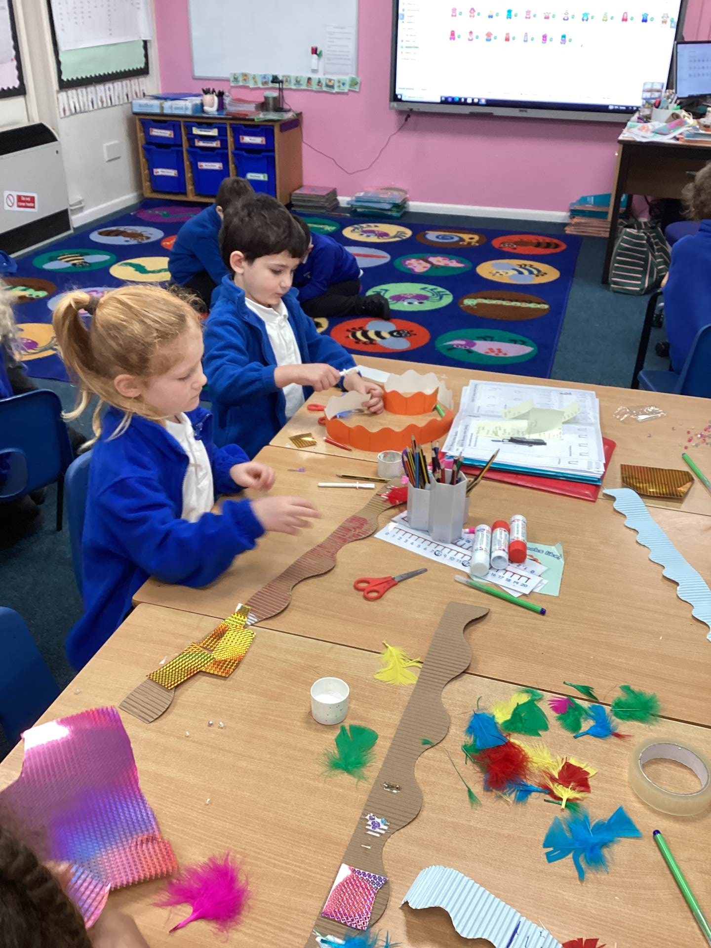 On Tuesday morning, we made carnival sashes and headdresses. We used feathers, beads, sparkly paper and other materials to create bold and colourful designs. Each costume turned out unique and it sparked a lot of conversation. The children were really proud of what they had made ☺️