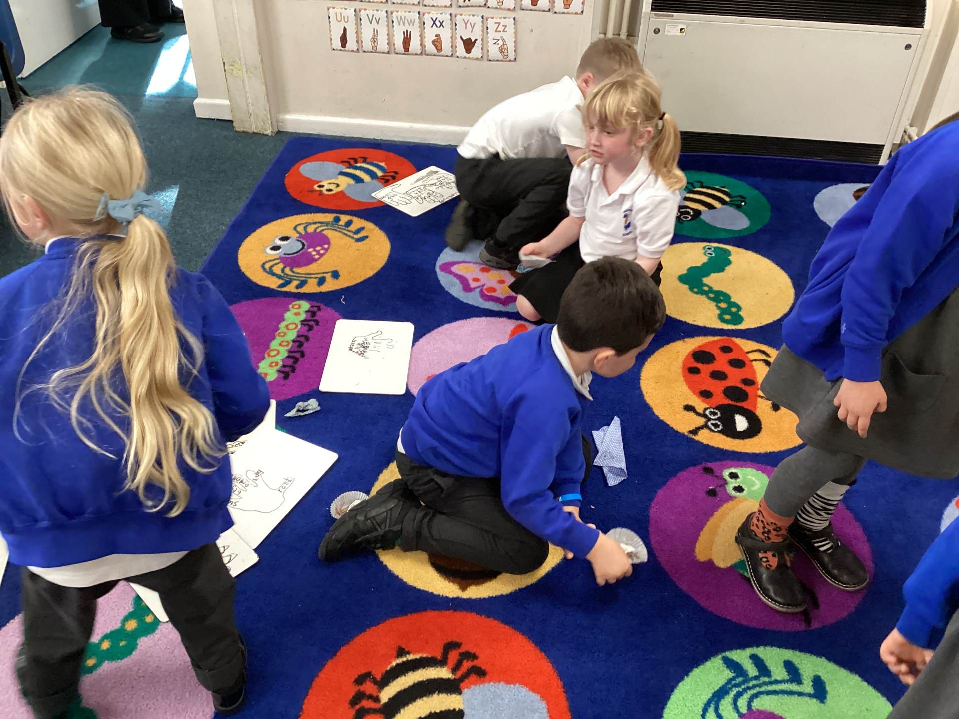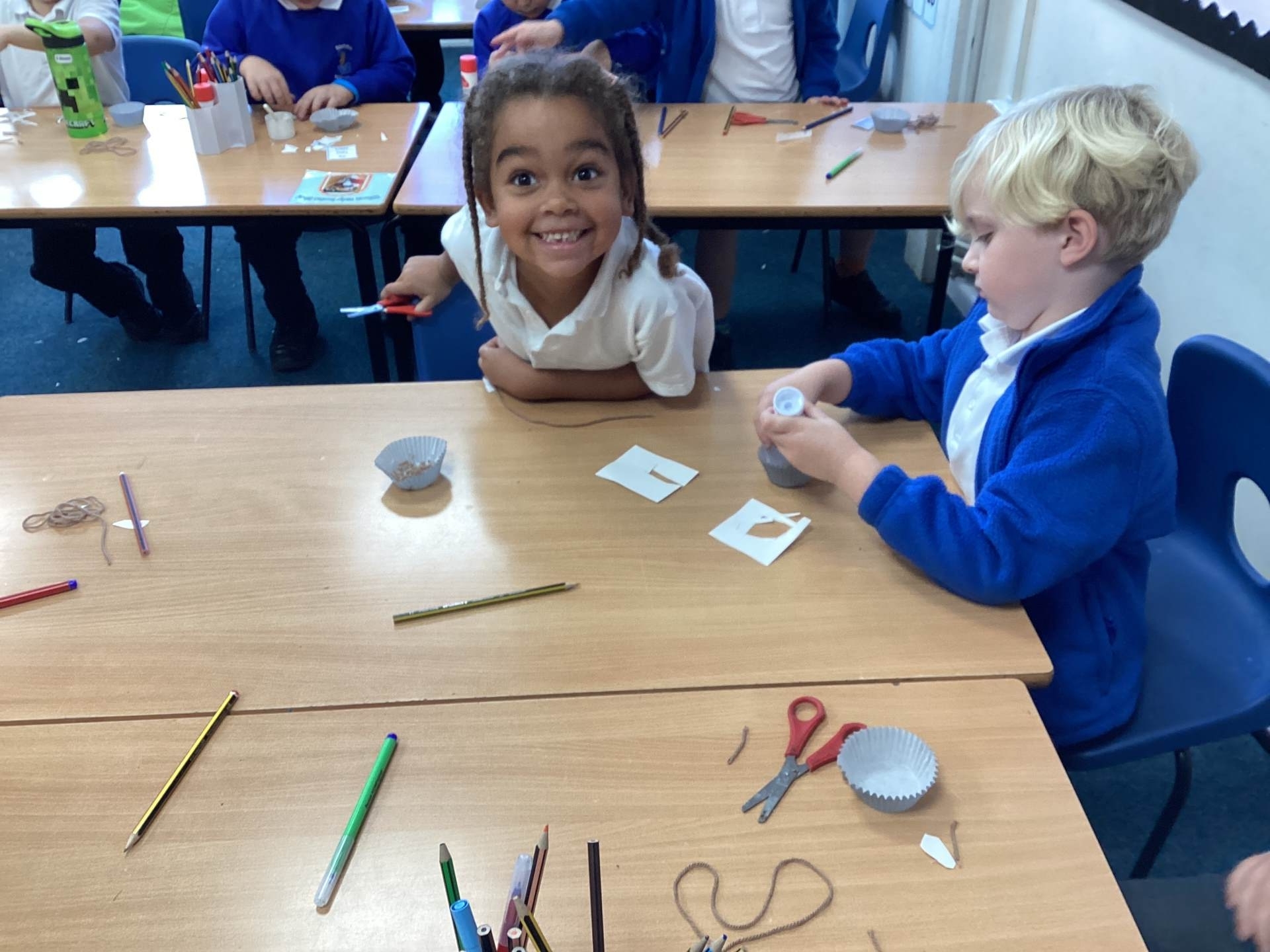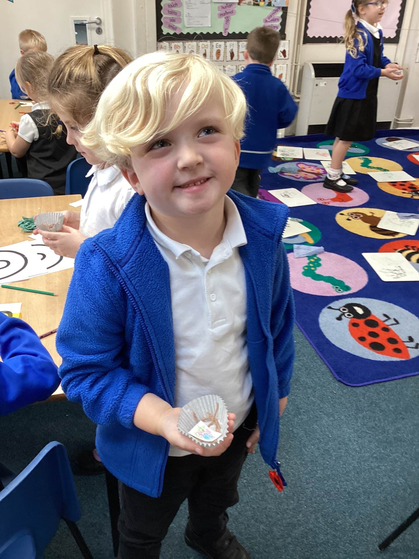 Then, in RE, we continued learning all about Moses – who he was, what he did around 4,000 years ago and how he helped his people. We had lots of fun making our own baby Moses in his basket. We used cupcake cases for the baskets, wool for the hay (to keep baby Moses warm!) and drew our own tiny baby Moses to go inside.