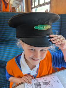 On the way back, we had the chance to meet some of the train guards, who talked to the children about the train. During the return journey, the class took part in a spotting activity, looking out of the window to see what they could find in the countryside. There were cows, birds, sheep, and a castle spotted… and then came the giraffe on the sheet. Several children had a good look out of the windows—just in case!