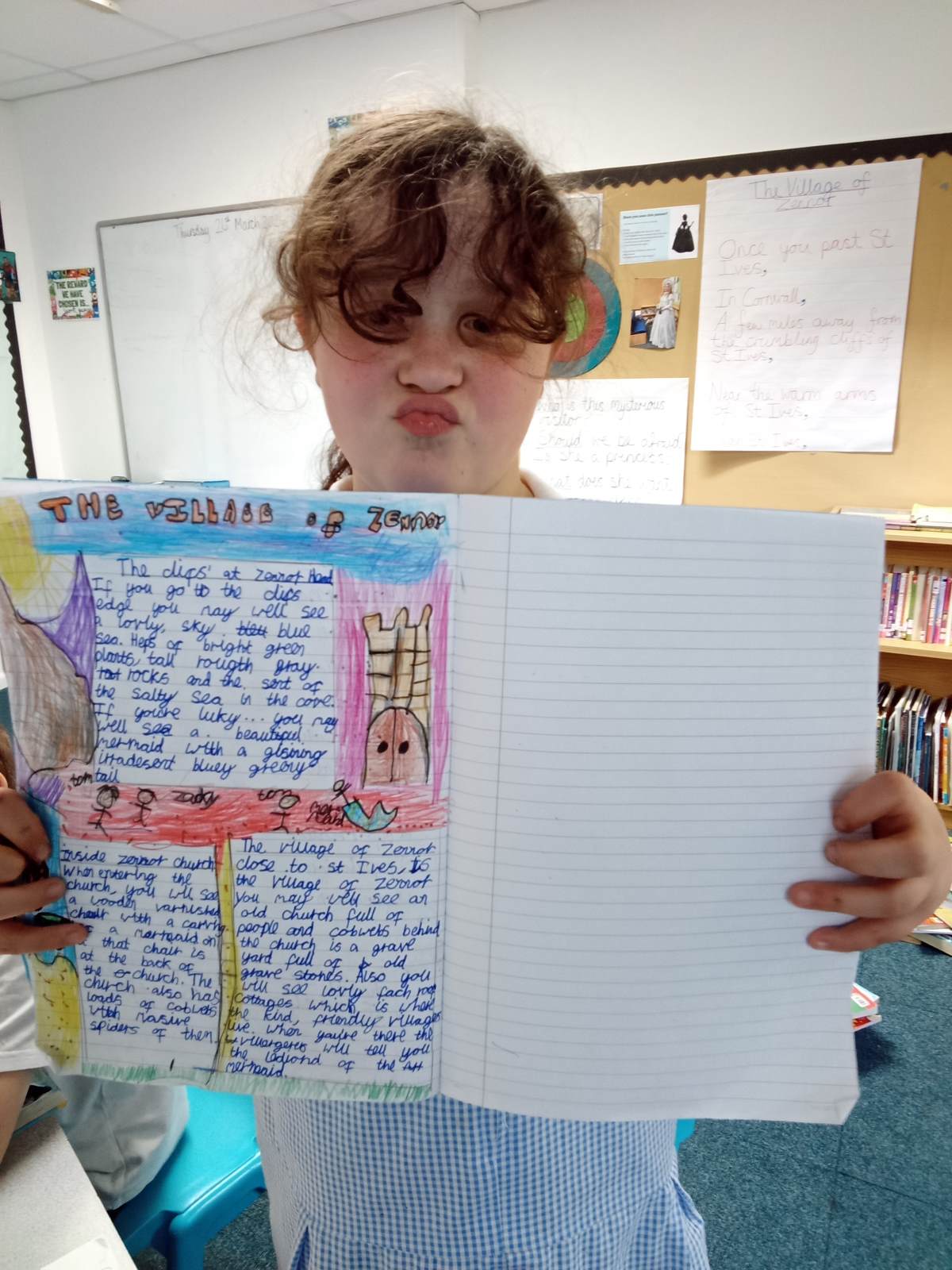 Inspired by the story, the children stepped into the role of tour guides, bringing the village of Zennor to life for others. They worked incredibly hard to create beautiful and persuasive tourist leaflets, encouraging visitors to explore this magical place. Their writing has been full of imagination, detail, and enthusiasm, truly reflecting their love for the legend.