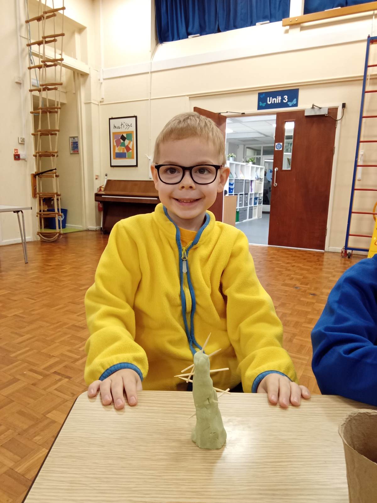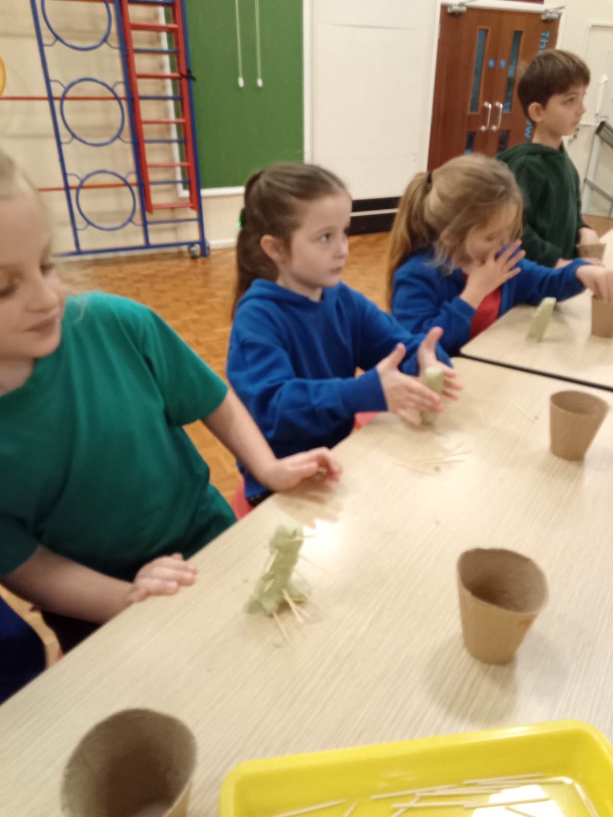 In the lesson we made our own Cacti! We learnt about how this plant is suited to its dry environment - the desert! We also talked about how it uses its thick, fleshy stem to absorb and store water and how the waxy coating on its skin reduces the loss of water in the heat.