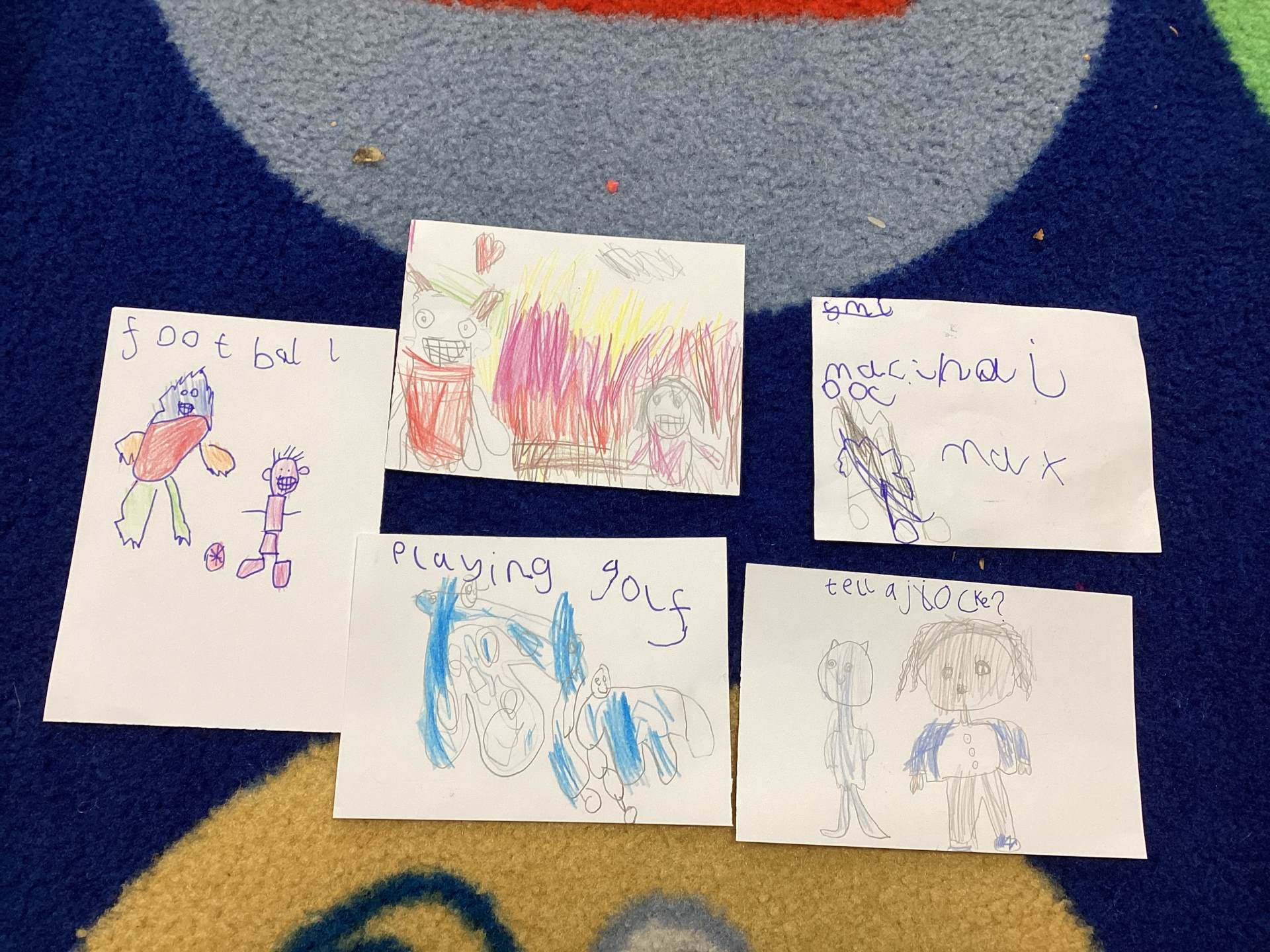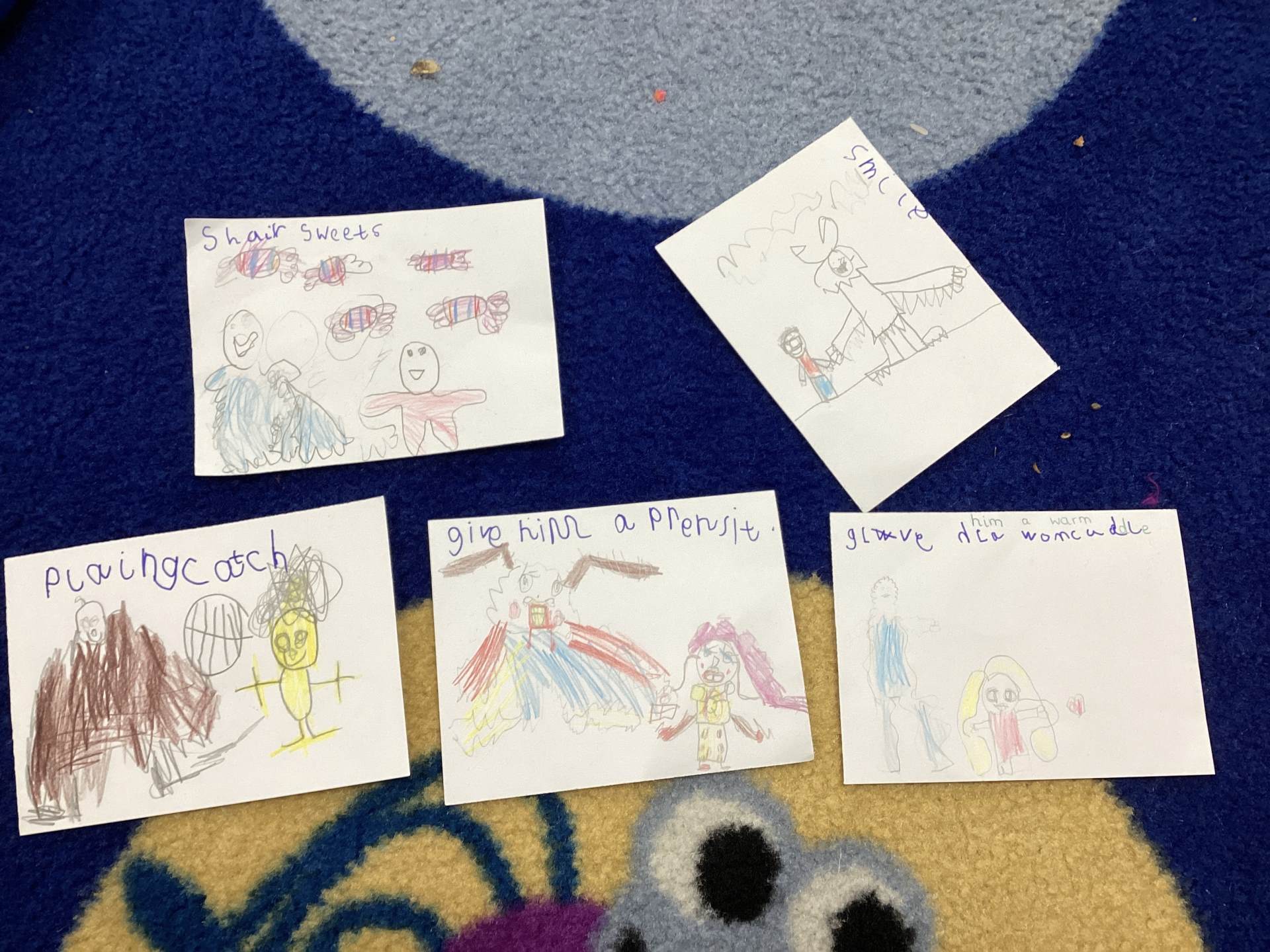 To show Yeti what a wonderful class we are, we decided to make friendship cards. Each child drew a beautiful picture of themselves with Yeti and wrote about what they could do to make him feel happy. There were so many thoughtful ideas. Some children said they would play games with him so he wouldn’t feel left out. Others said they would share their toys, read him stories, give him hugs or tell him a joke to make him laugh.