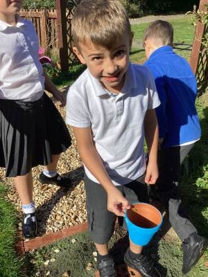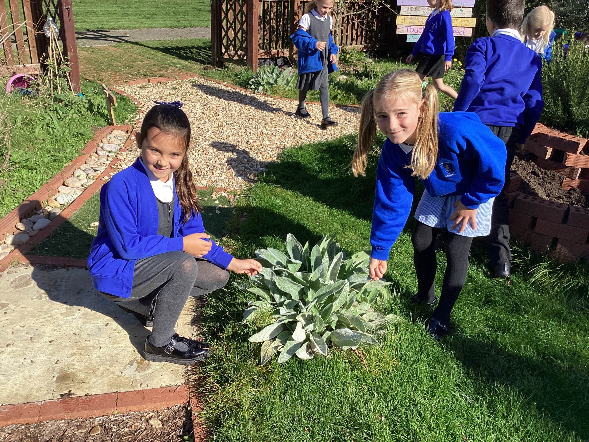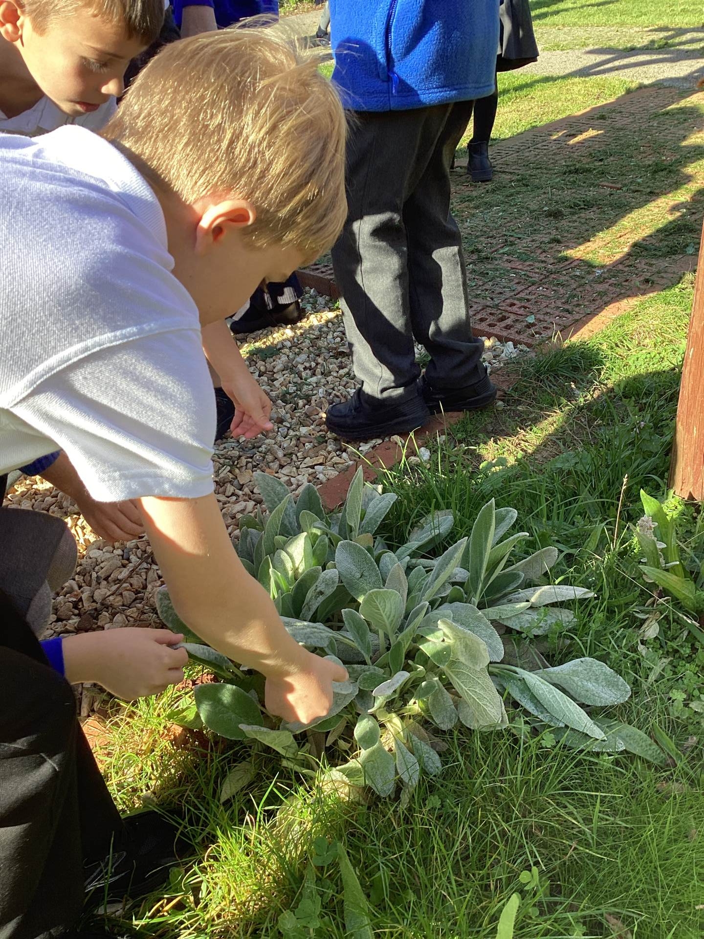 This week we enjoyed a lovely walk in our beautiful, new sensory garden. The children used their senses (except taste!) to experience all the garden has to offer. They enjoyed rubbing their fingers between the herbs and smelling the scent produced. They also enjoyed listening to the musical instruments and looking at bugs and spiders hiding under the terracotta pots! A mushroom was spotted growing in the grass too, as well as some beautiful purple flowers.