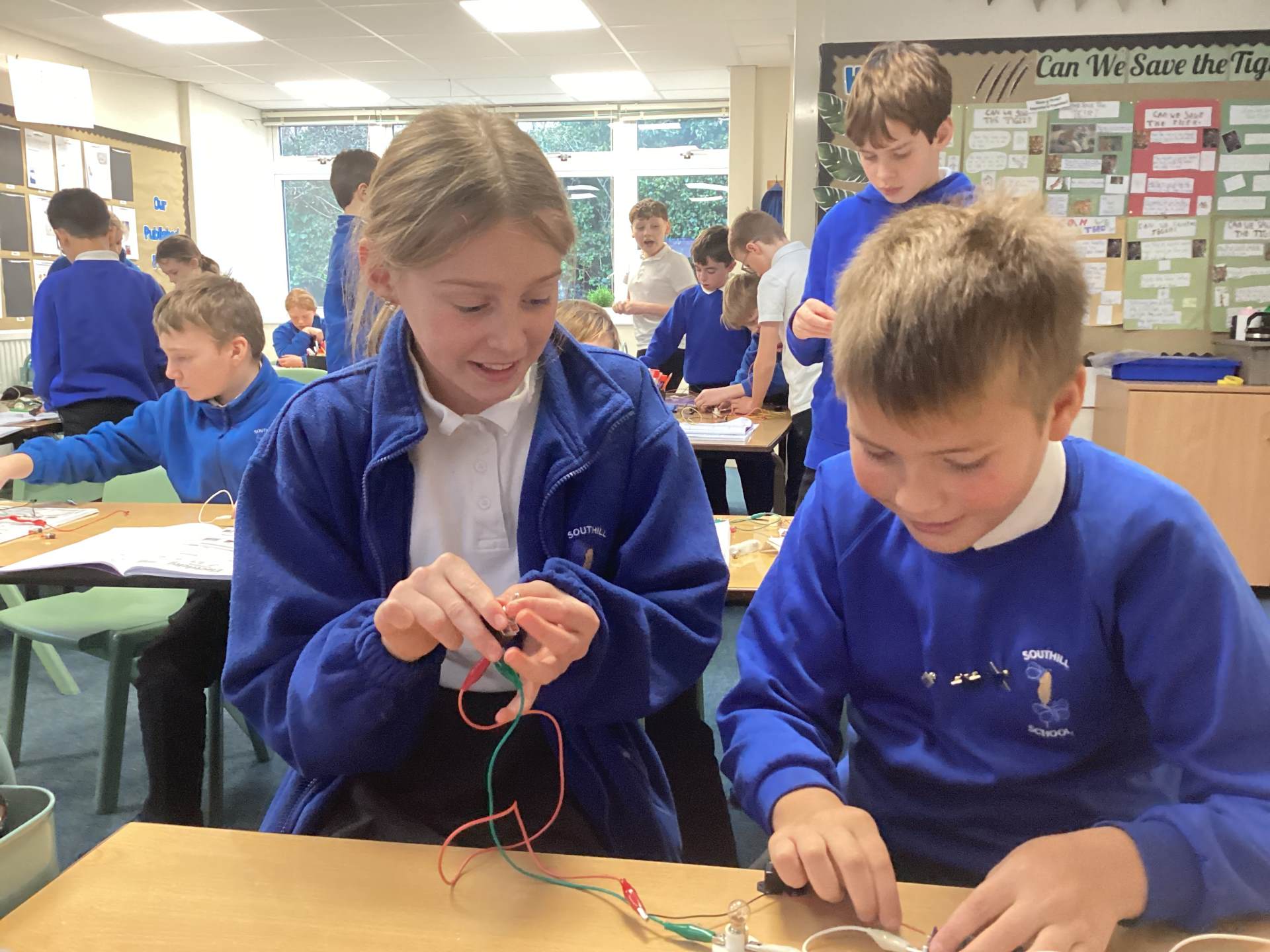 Year 6 have started their new afternoon topic for science all about electricity. It's a very exciting, practical unit in which pupils design circuits made of multiple components such as switches, buzzers, lightbulbs, motors and batteries. They learn how to draw the universally recognised symbols for these components, and then predict whether or not the circuit will work. Then, they work together to put it to the test with real parts! They repeat this sequence a few times over the lessons, each step going more in depth and complex.