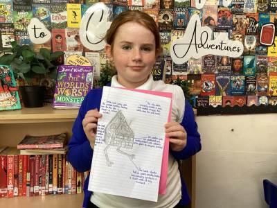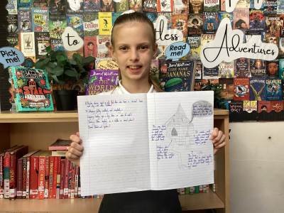 After reading the prologue together, the children put their comprehension skills to the test by answering questions and discussing their first impressions of the story. They then moved on to a creative task, sketching the house and labelling it with descriptions taken directly from the text. This was a fantastic opportunity to combine reading with art, and the results were both imaginative and impressive.