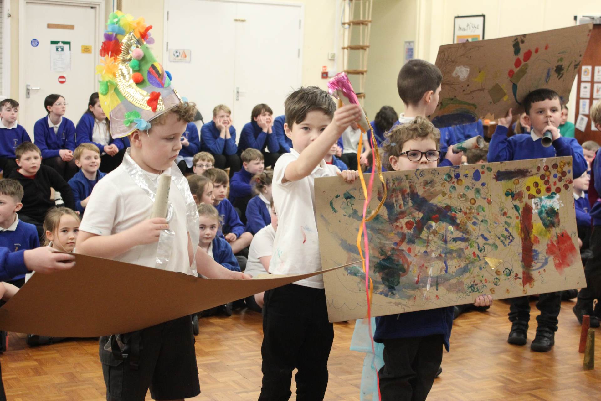 Finally, it was time to show off all their hard work in our singing assembly. With trumpets in hand and vibrant outfits on display, the children beamed with pride as they presented their creations. The assembly was full of fun, music, and colour. A real celebration of creativity!