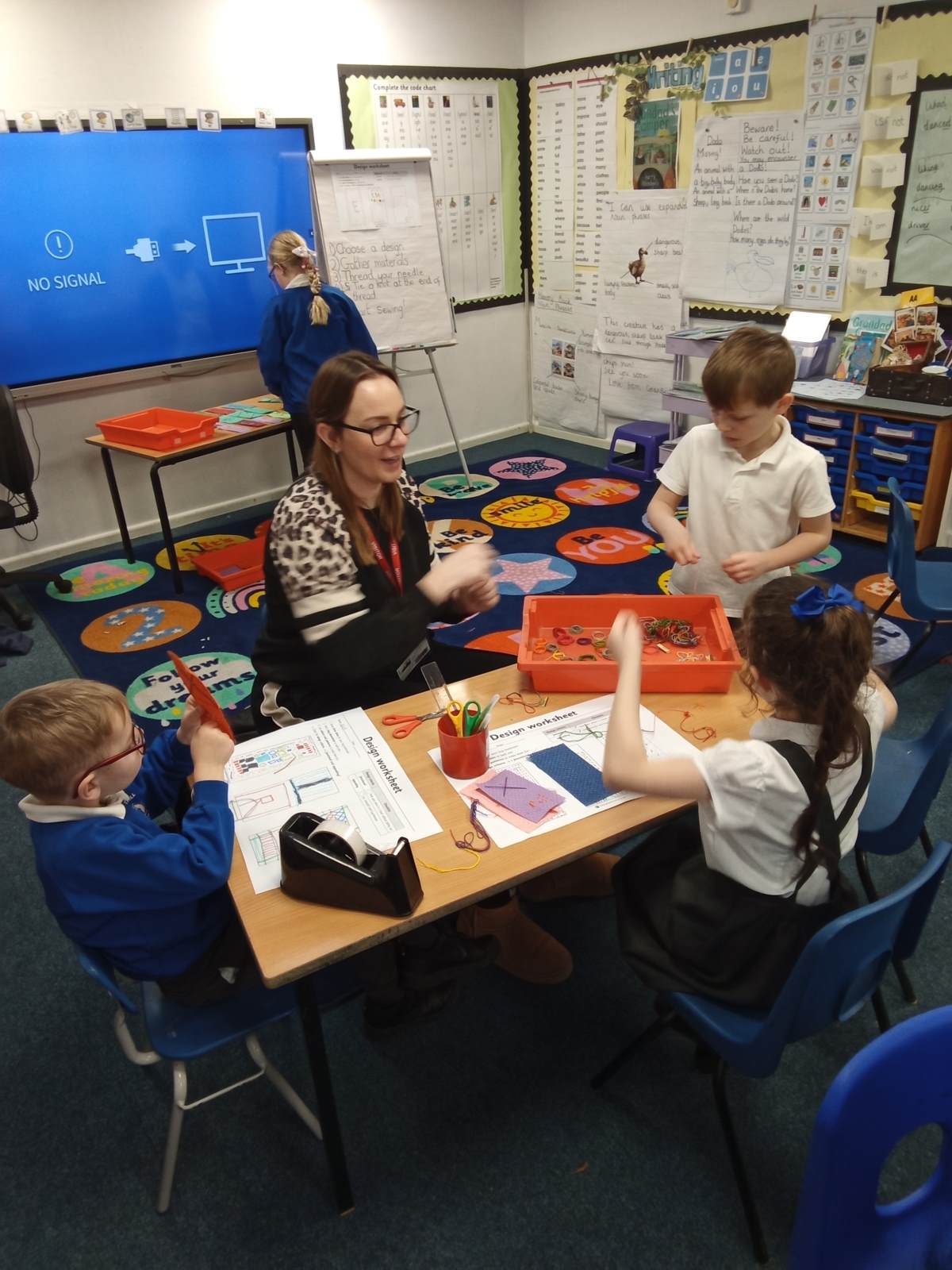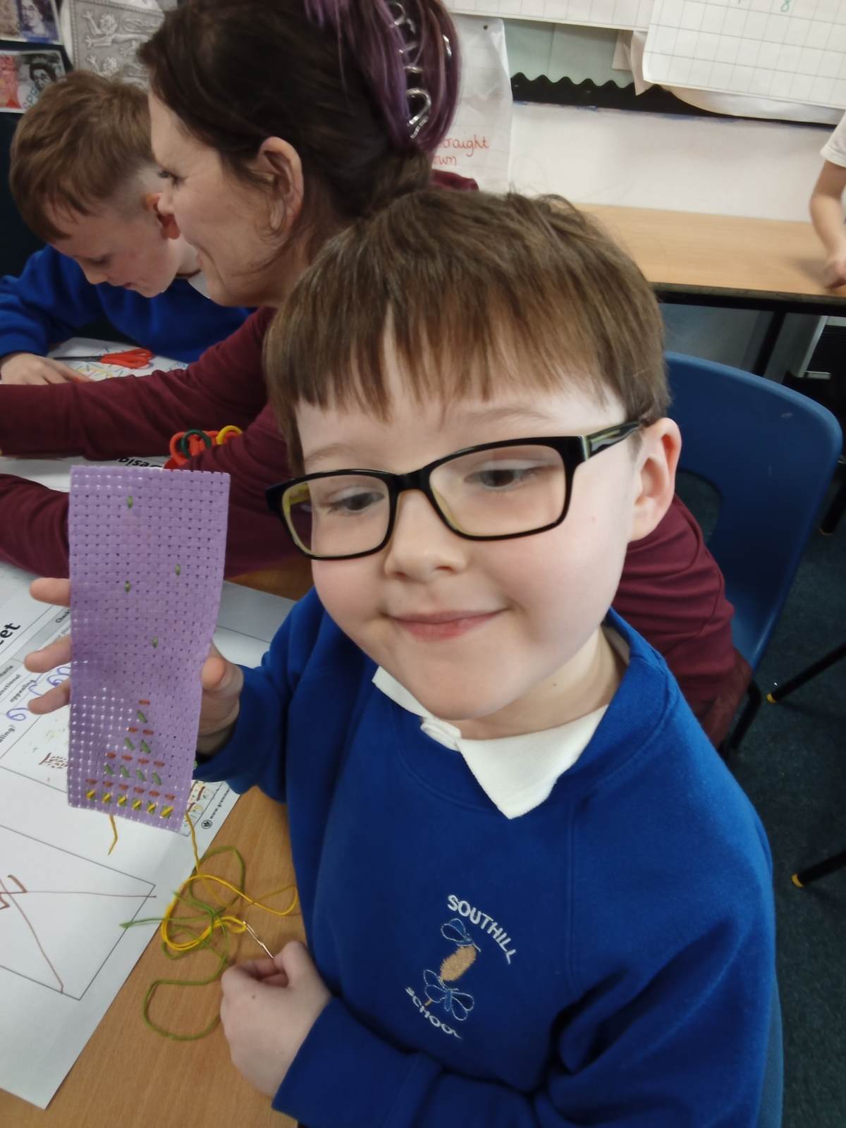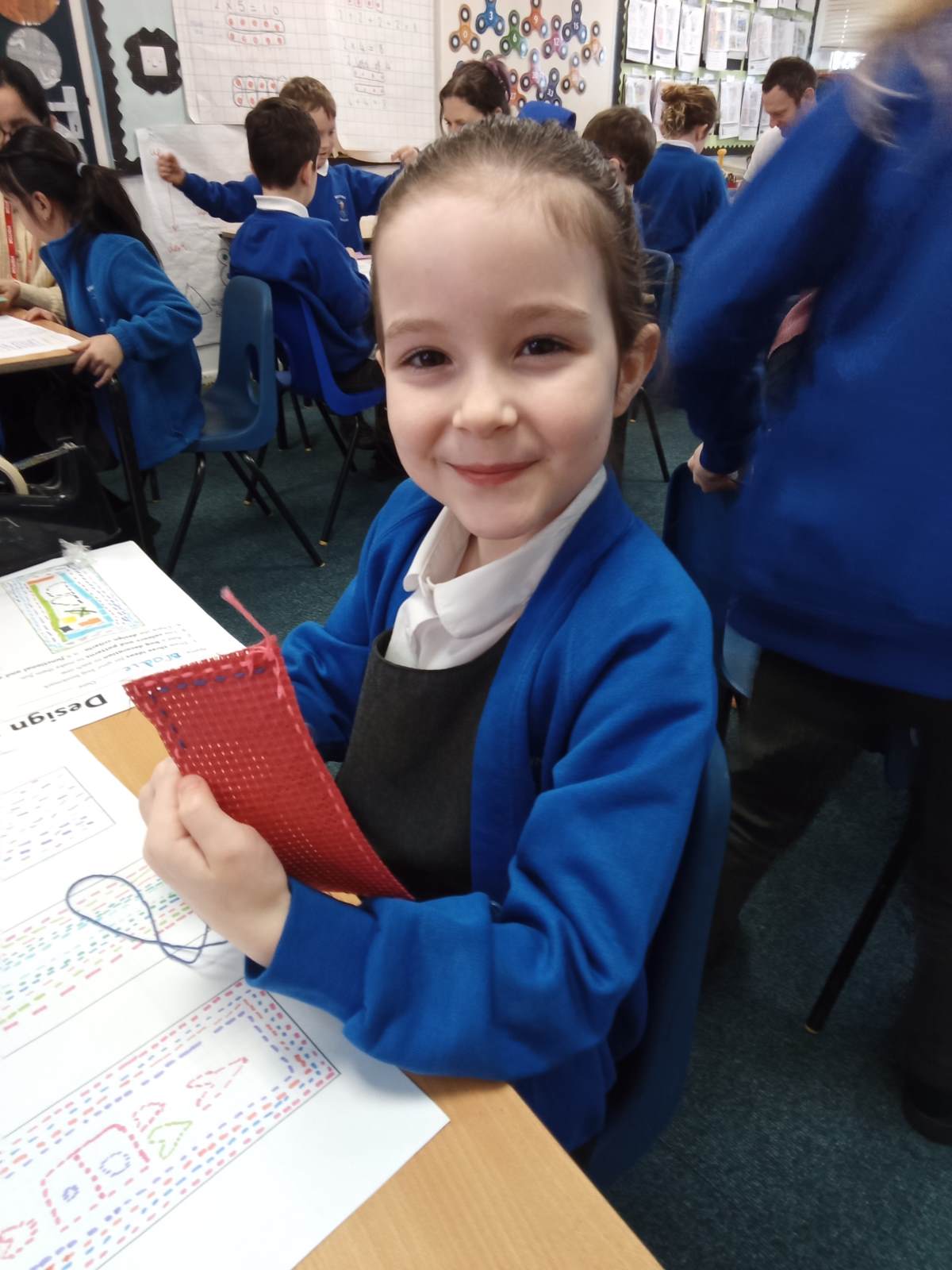 We welcomed lots of helpers today because we had a whole day sewing! Earlier in the week, we spent some time planning what we wanted our bookmarks to look like. We learnt about running stitch and cross stitch, planning which we wanted to use. Today we put our plans into action! We were so impressed with the children's resilience, determination and manners. They have all produced some amazing work which they are proud of. Next week, we will add the finishing touches to them. We literally could not have done it without the help of the mums, dads, nannies, aunties and friends who came to lend a hand - Thank you all so much!