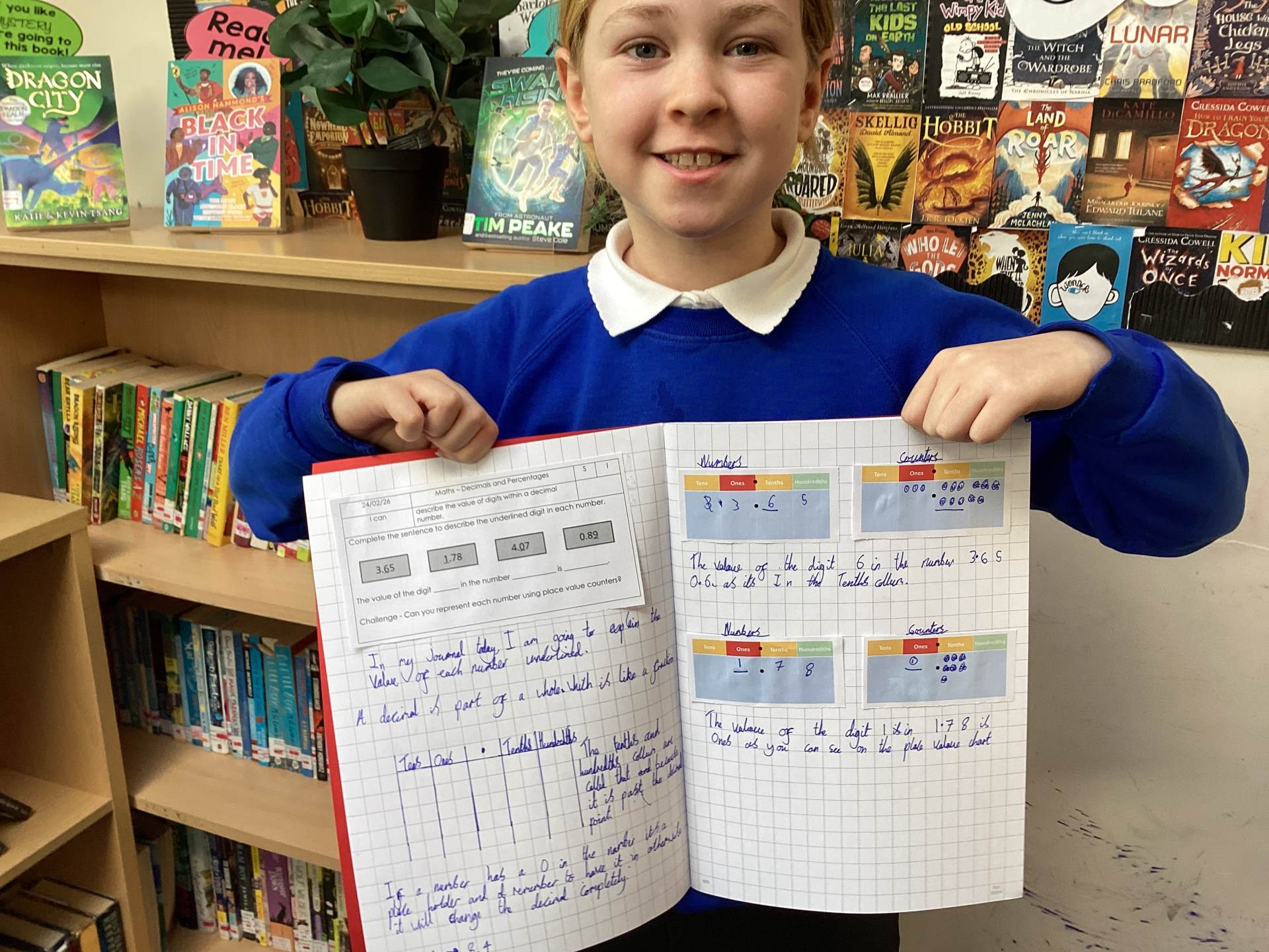 Today’s journaling was EXCELLENT. The pride in presentation, the depth of explanation and the clear reasoning really showed how quickly the children are grasping what can be tricky mathematical concepts. Many pupils used diagrams, place value charts and fraction links to prove their thinking. Some even challenged themselves with their own decimal examples and explained them step by step.