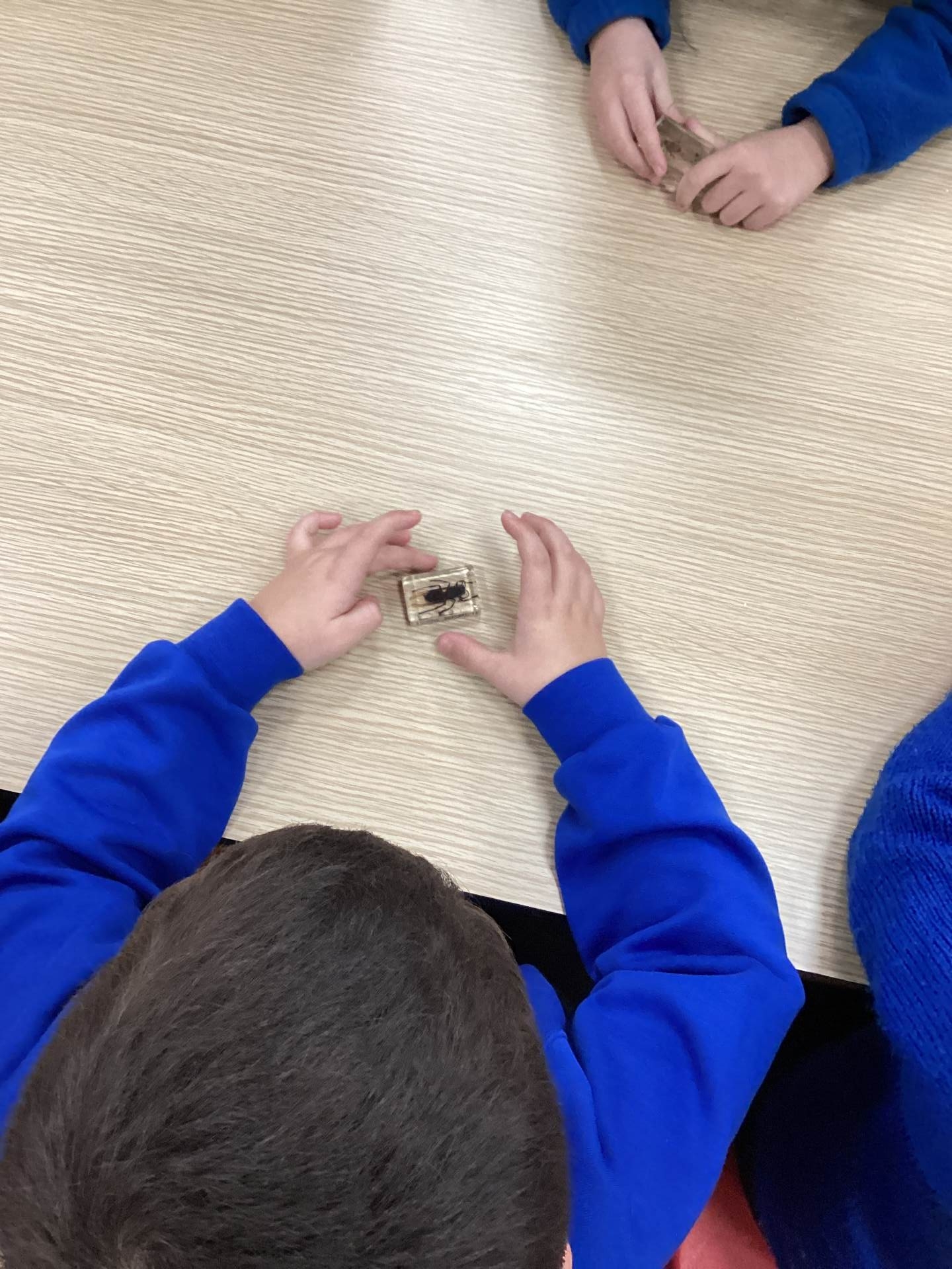 Professor Lee brought along some amazing specimens for us to explore. We were able to look closely at spiders and insects preserved in resin. This gave everyone a chance to notice the tiny details we don’t usually see—especially the legs! We learned that spiders have eight legs, while insects (like butterflies and ants) have six.