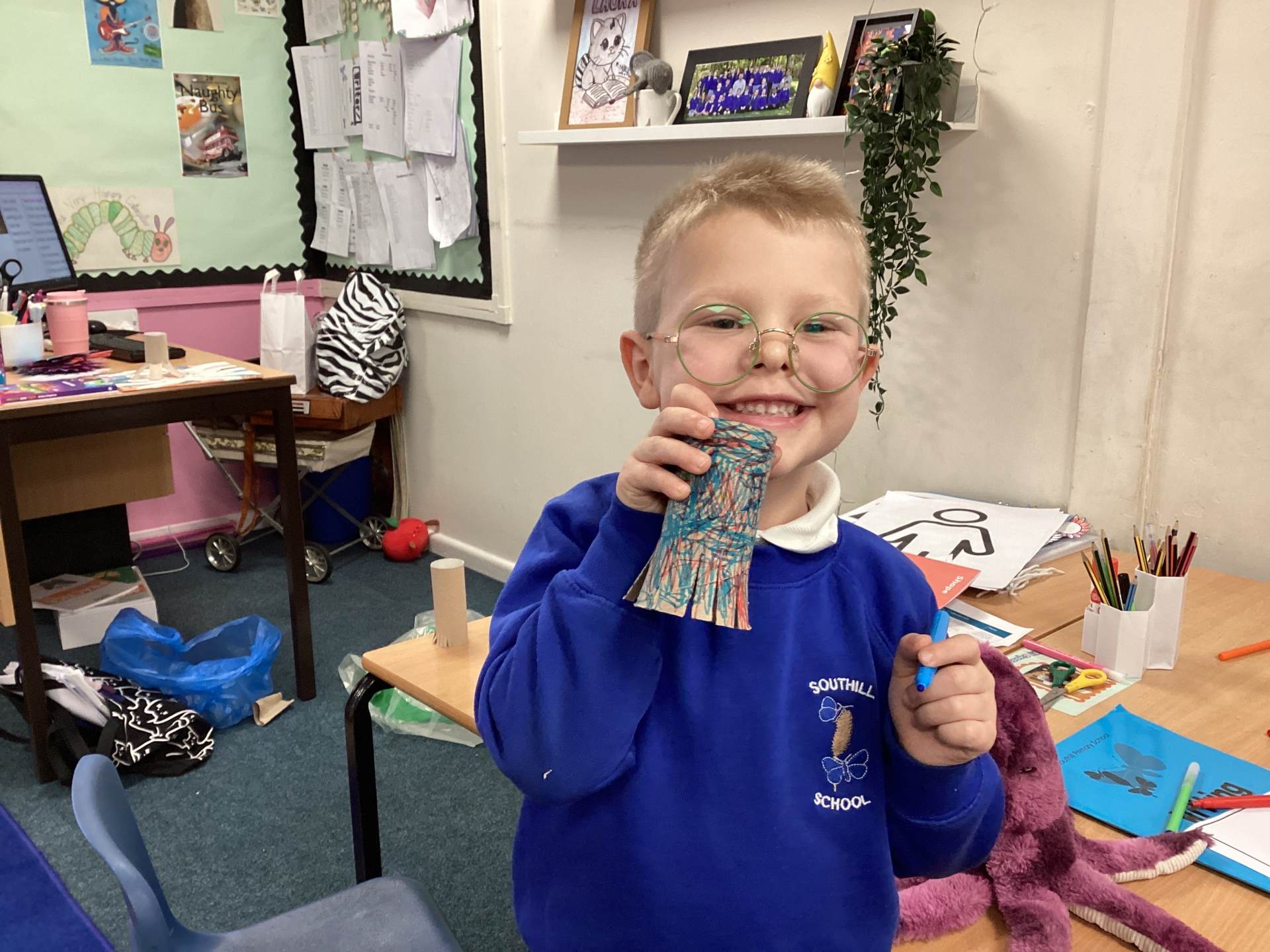 We began our morning by diving into our new book, Leo and the Octopus. The children love learning about octopuses! They got hands-on and made their very own octopuses using toilet rolls. Each octopus came complete with a special tag where the children wrote an interesting octopus fact. Did you know they have three hearts and that they use their arms to taste and touch?!
