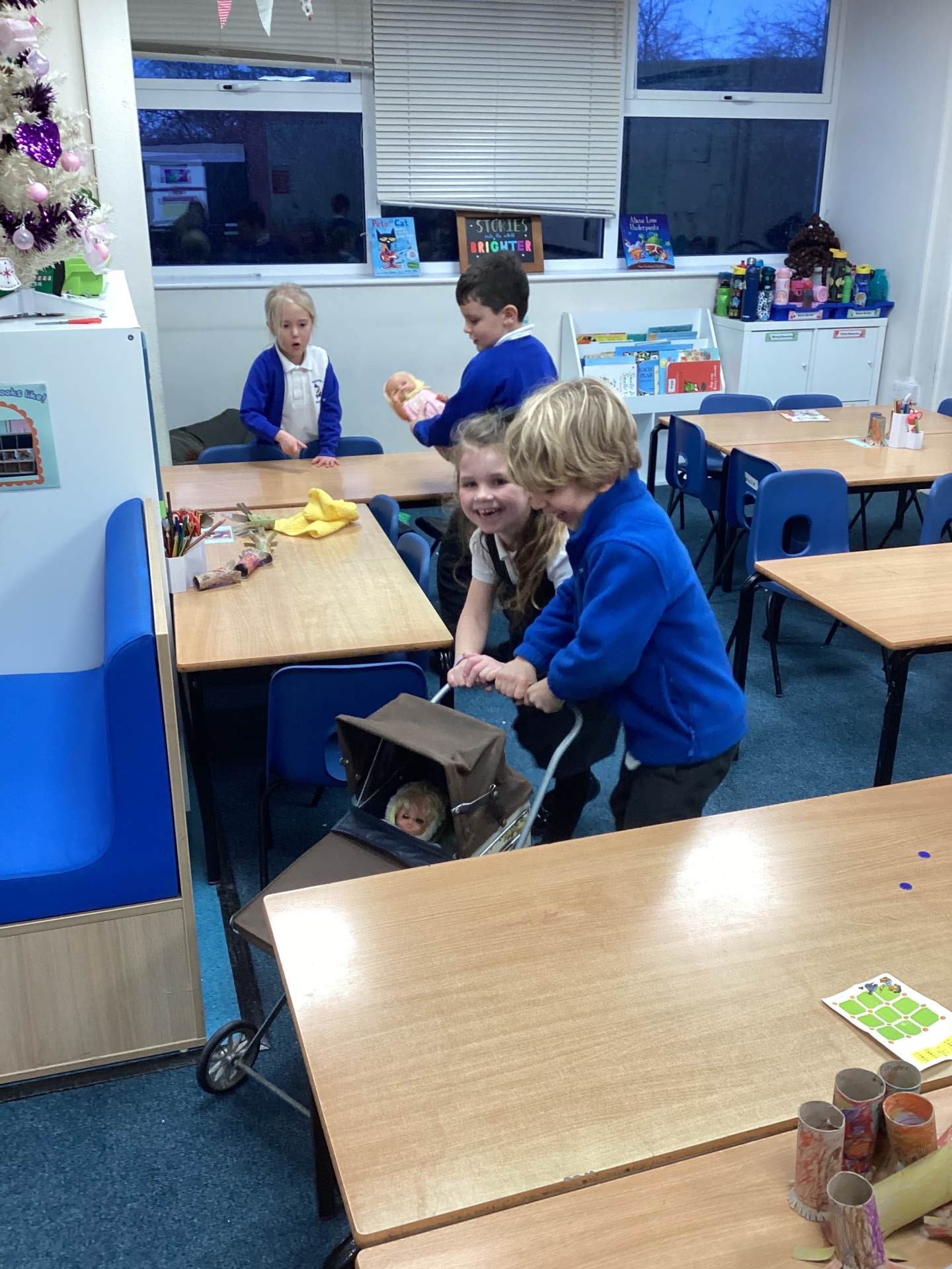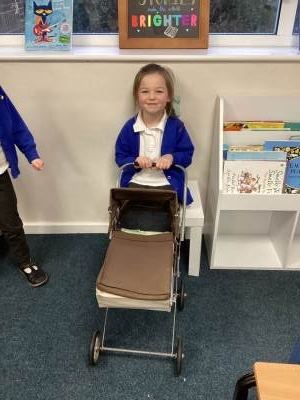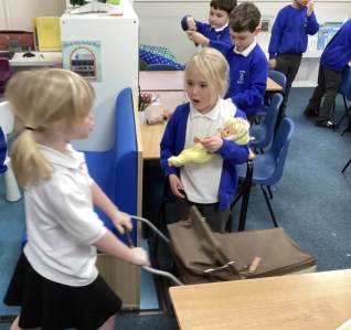 • An old pram and baby dolls