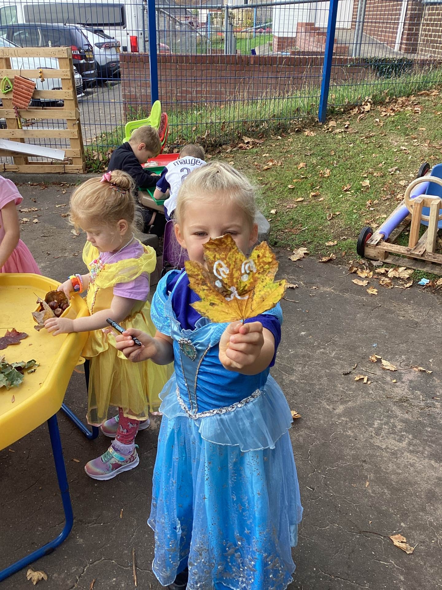 We went on a welly walk to see how the trees are changing. The children were so excited to spot colourful leaves, shiny conkers, and swirling sycamore seeds! We collected some special leaves to bring back to school and used them to paint with and create our own fantastic leaf people.