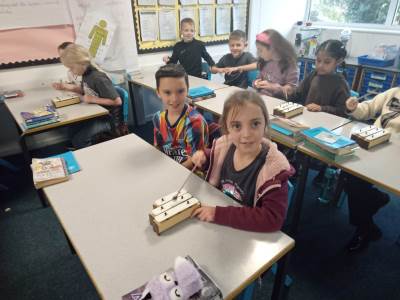 In music this half term, we have been using a glockenspiel. A glokenspiel is a percussion instrument with bell-like tones. It’s often used in orchestras and bands. It adds a clear, sparkling sound to melodies.
