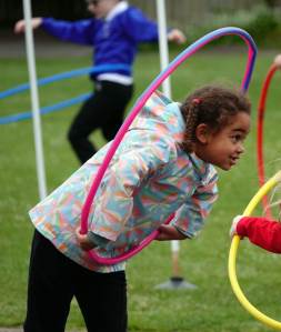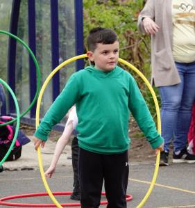 From carefully laid out hopscotch courses to impressive hoop toss challenges, the activities kept everyone engaged and active. Some children tested their aim by throwing hoops onto posts while others settled disputes the fun way with a lively round of rock paper scissors. Of course, plenty chose to keep it classic, spinning hoops and moving those hips with determination and smiles all around.