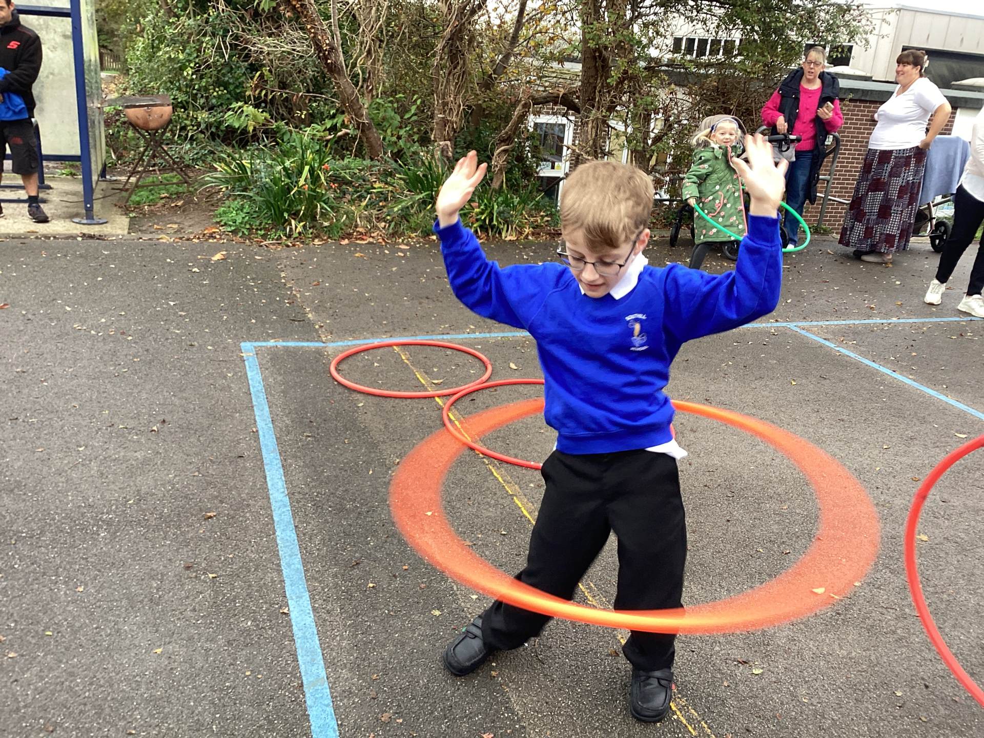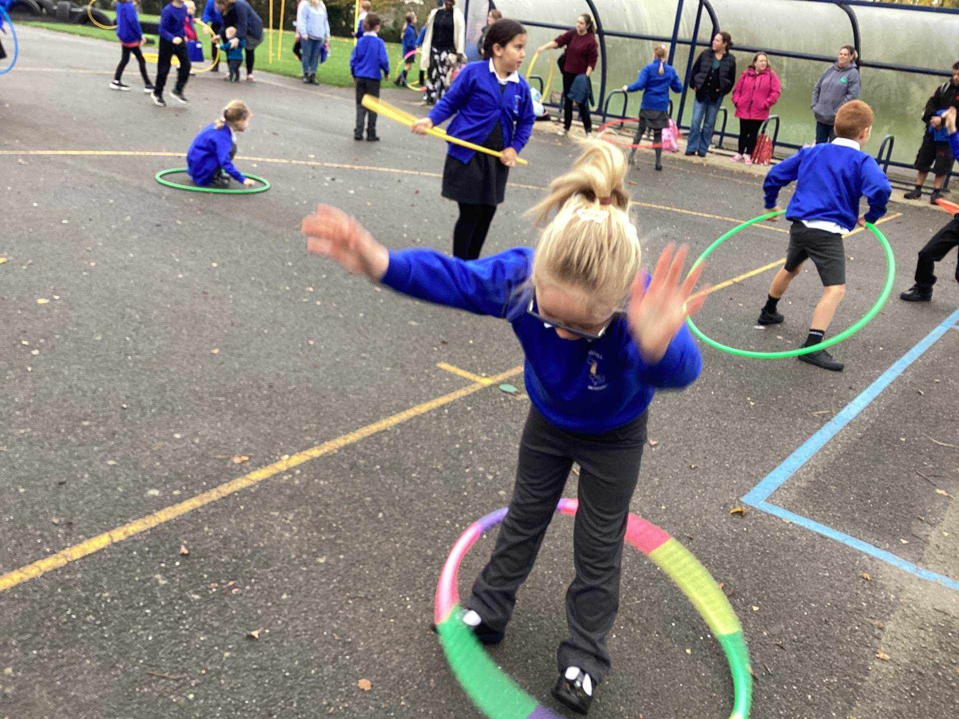 This morning the weather stayed kind, which meant Southill Primary School could wheel out the speaker, open the PE cupboard doors and welcome the children onto the playground for a fantastic hula-hooping session. It was brilliant to see so many children outside, smiling, moving and enjoying being active together.