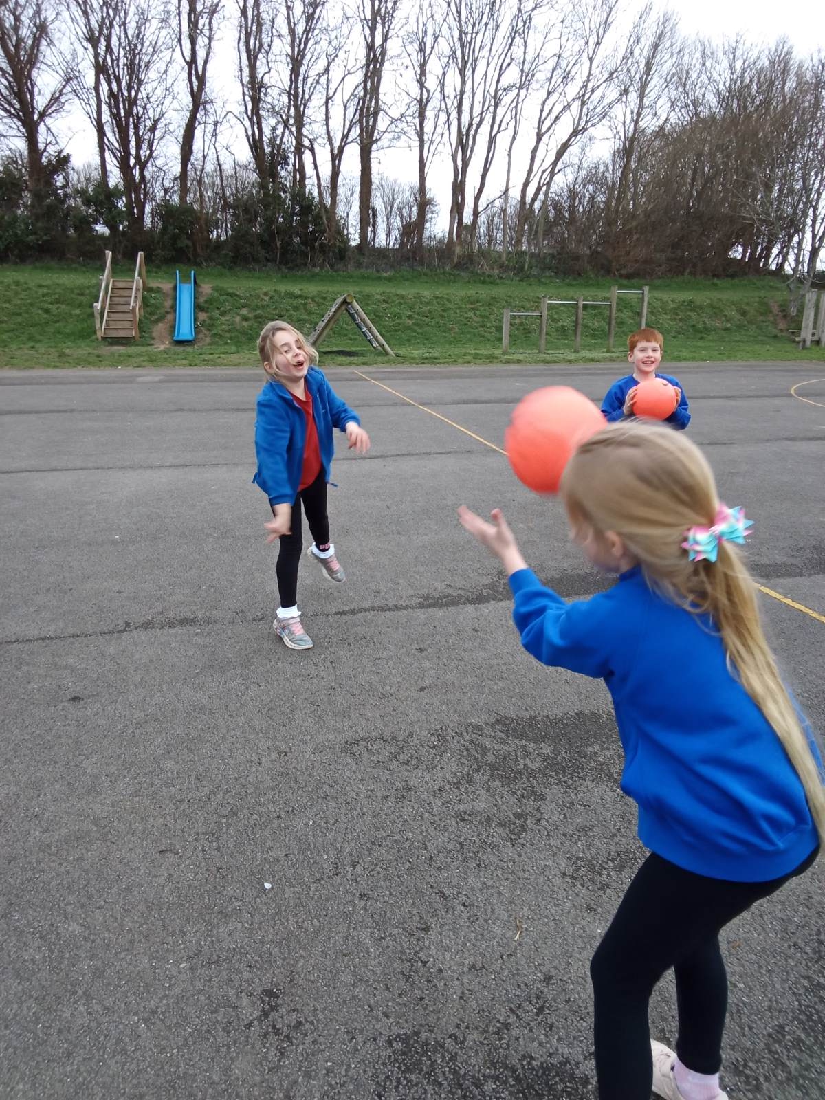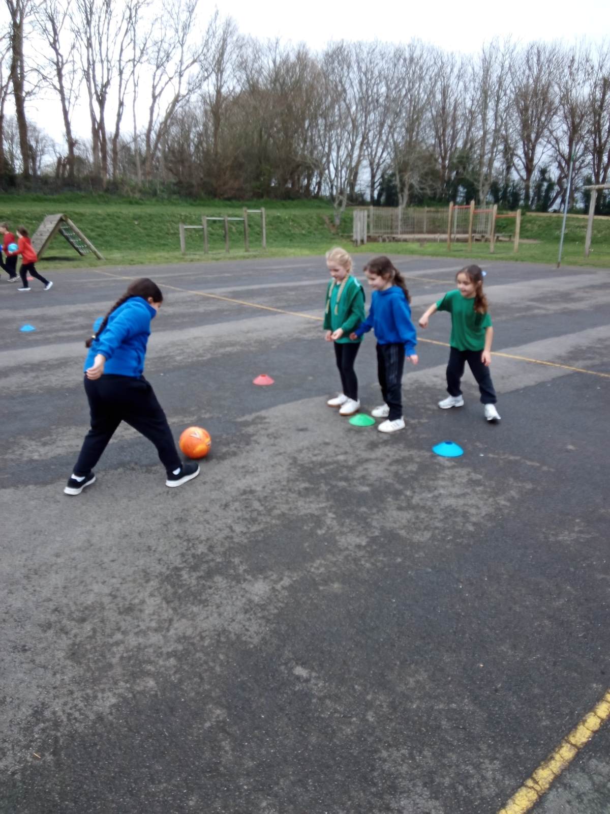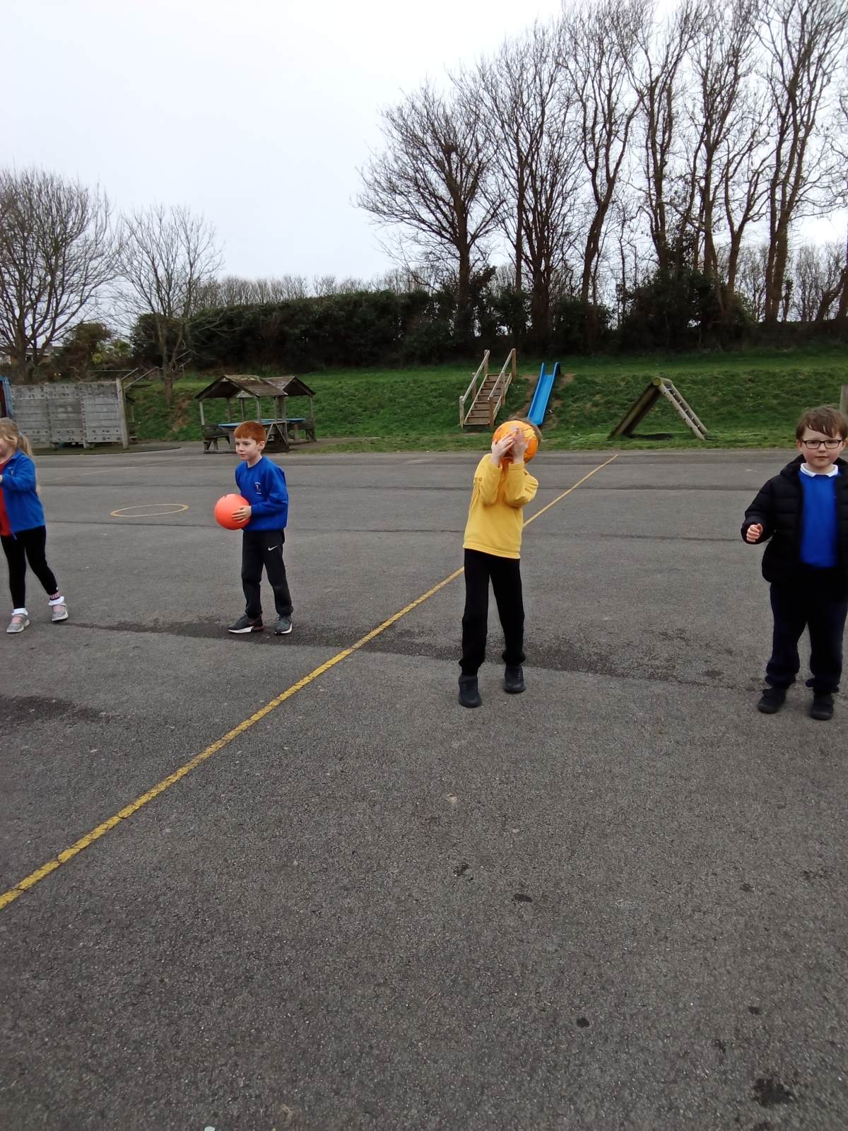 In the photos you can see the children practising scoring using different equipment and working in pairs and teams on attacking and defending. We have enjoyed lots of different games and activities over the half term to develop these skills. Some of the games we played were