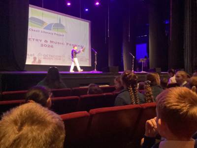 This morning, Year 5 stepped into the salty sea air and made their way not to Southill Primary, but back to Weymouth Pavilion for their third performance. After two Shakespeare productions, it was time for poetry, and excitement was high as we watched these seasoned performers take to the stage once more.