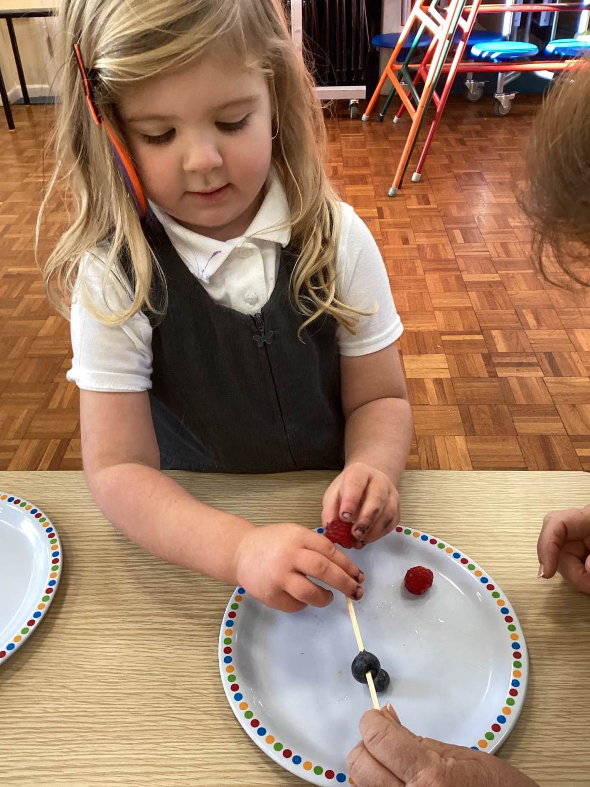 We all enjoyed meeting the real life superheroes and listened extremely well. We have also been learning about repeating patterns and made some fruit kebabs - we all did very well. They were delicious.