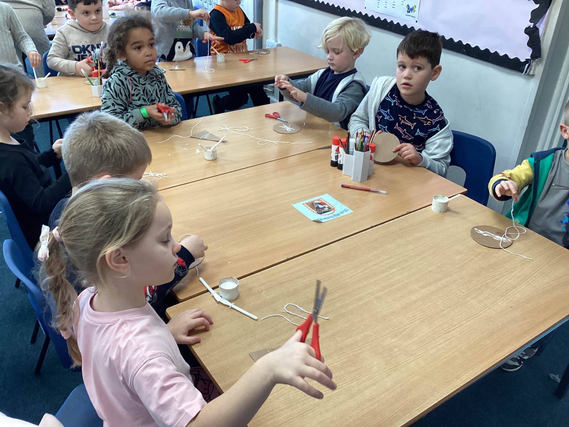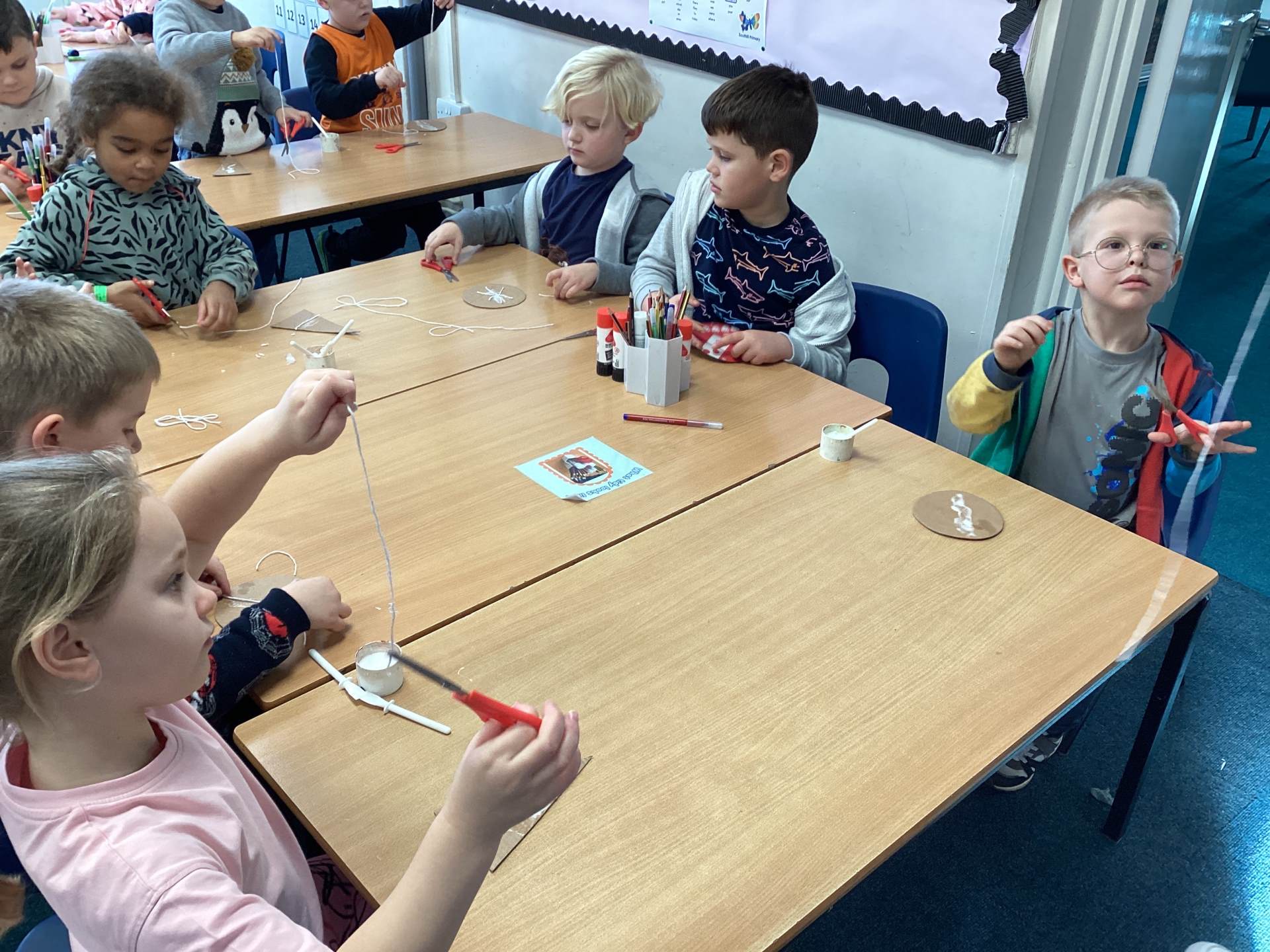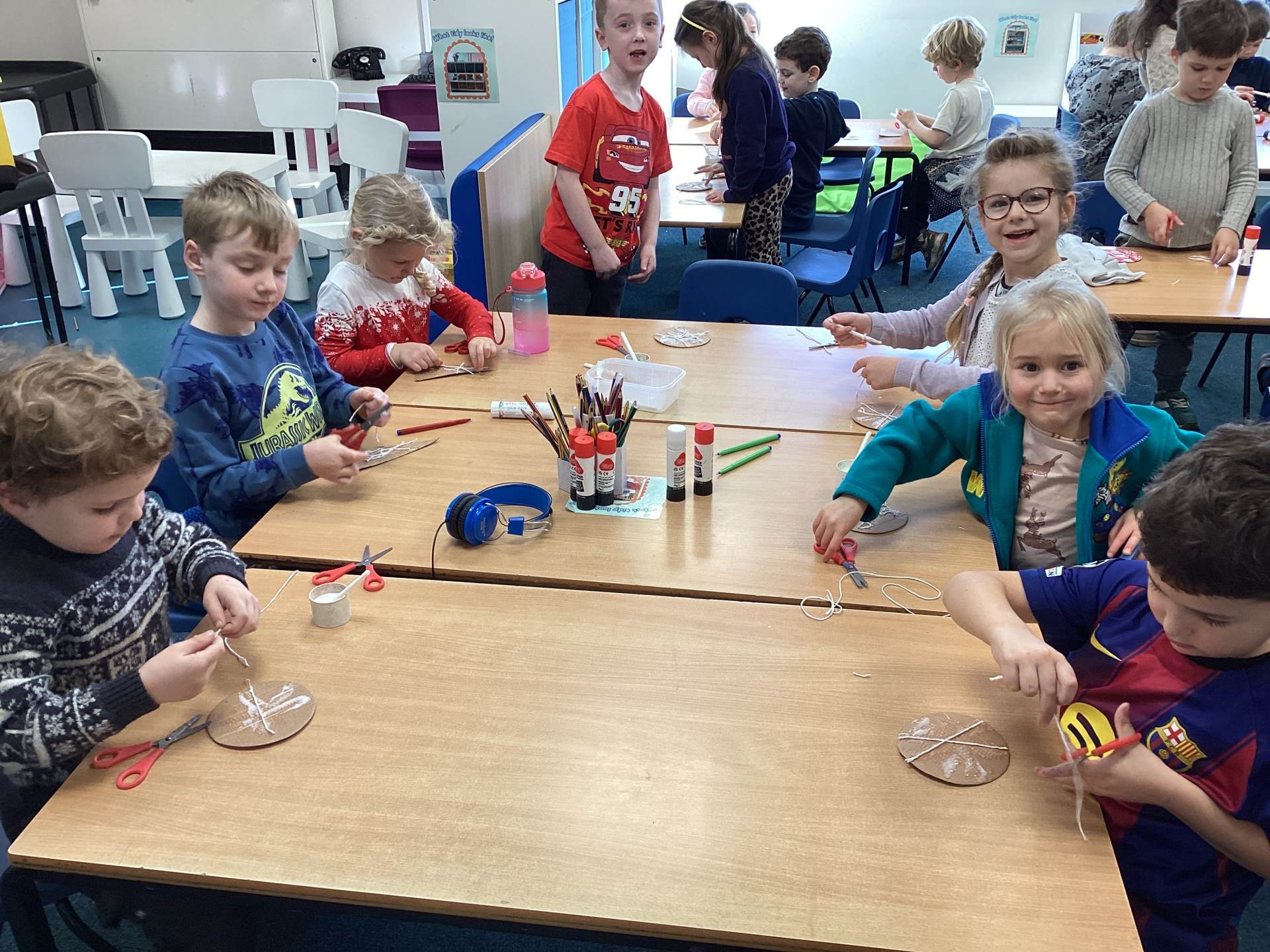 To finish the week, we got properly festive by making our very own Christmas decorations. Using cardboard, string, foil, and felt tips, the children created stunning stained-glass style baubles and Christmas trees. First, we arranged and glued string onto the cardboard in different shapes. Then we carefully placed foil over the top and smoothed it down so the raised patterns shone through. Finally, we coloured in the shapes, creating beautiful, bright designs that shimmer and shine. They look magical!