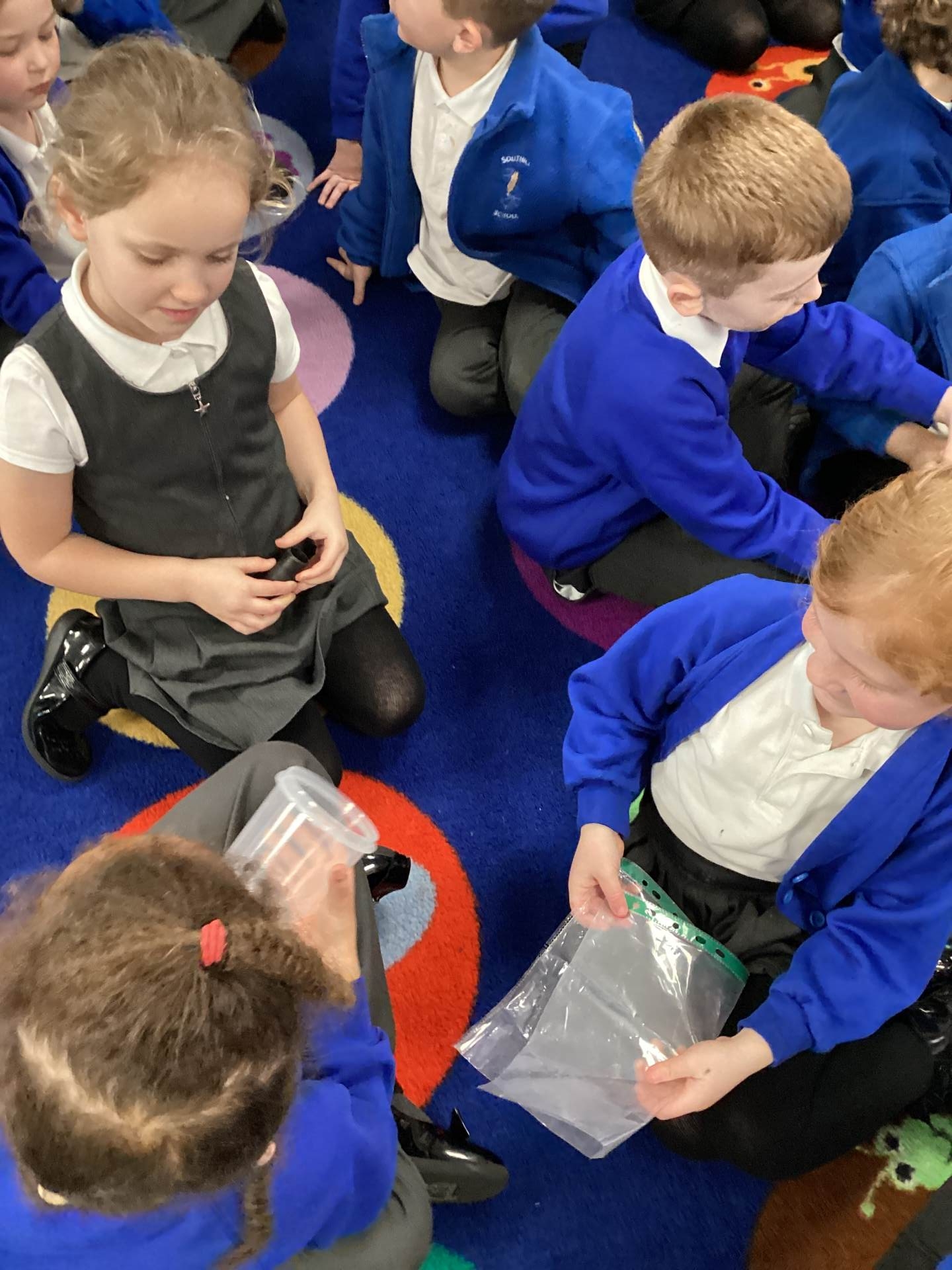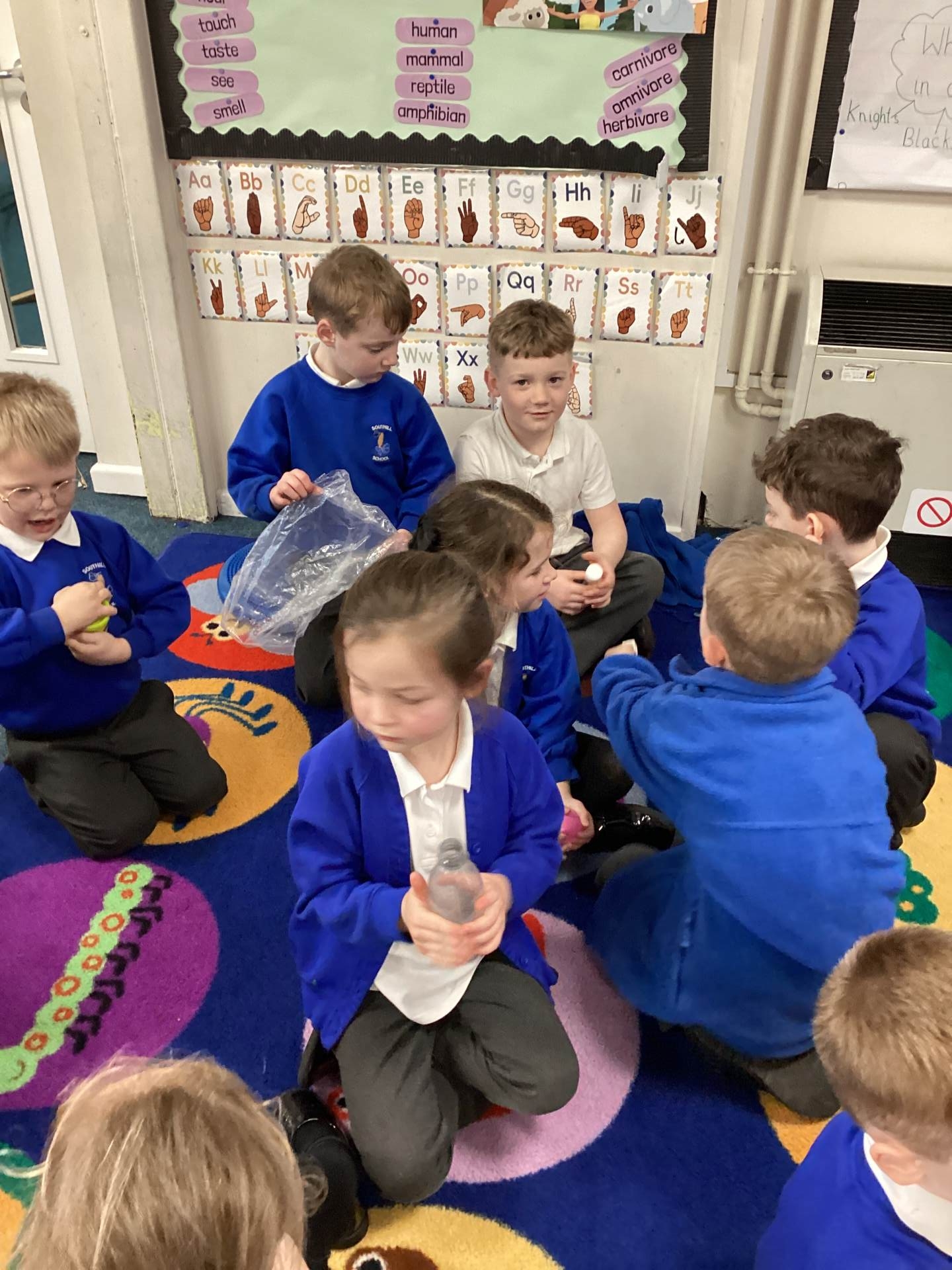They talked about how the beads started off hard and tiny, and then became soft and squishy once they had absorbed the water. This led to some fantastic scientific discussions about materials, changes, and how some substances can soak up liquids.
