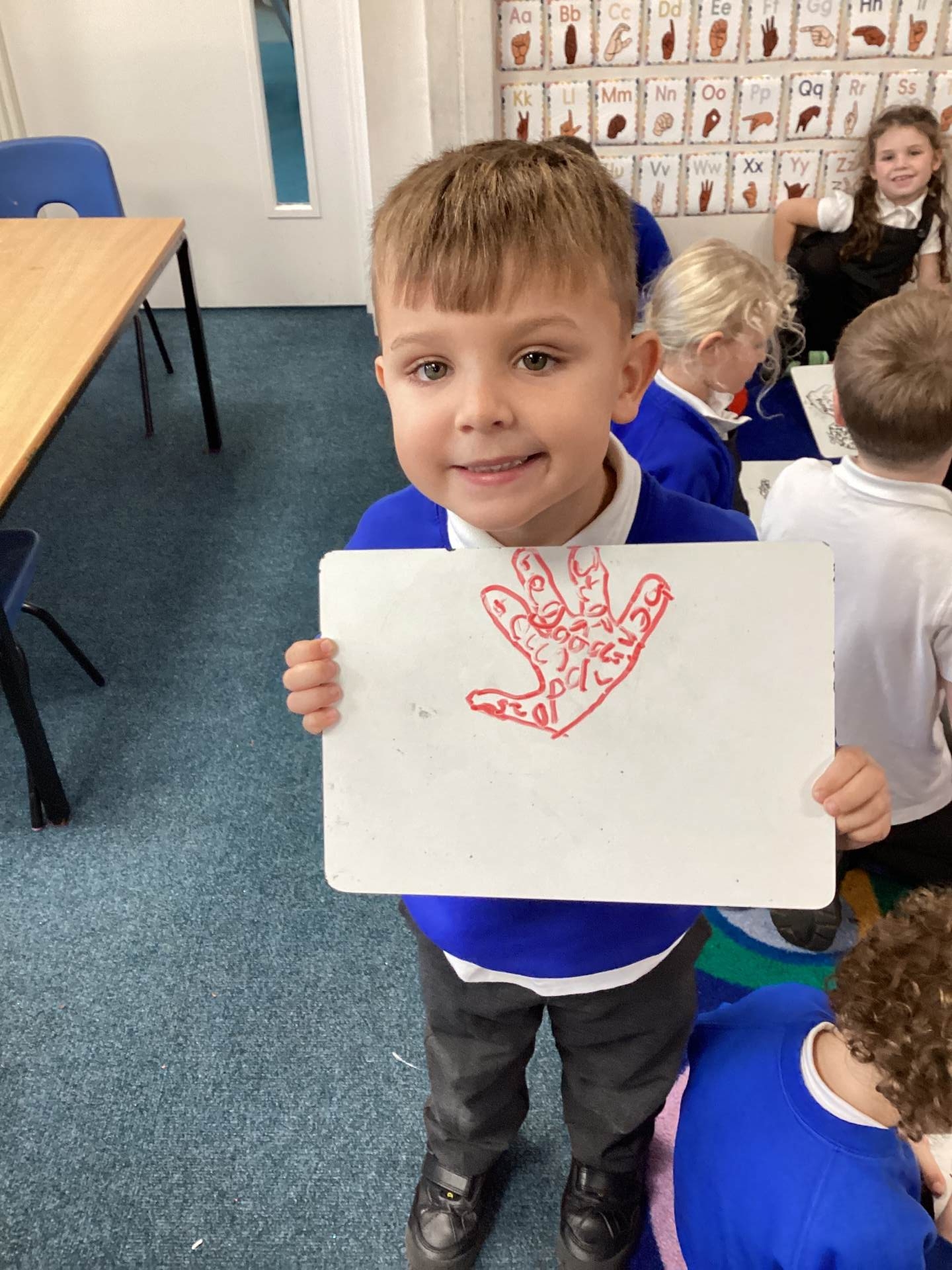After that, we drew around our hands and wrote down our anti-bullying superpowers, such as: