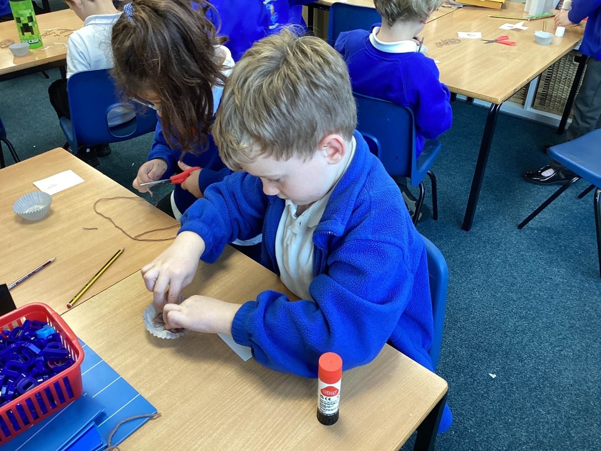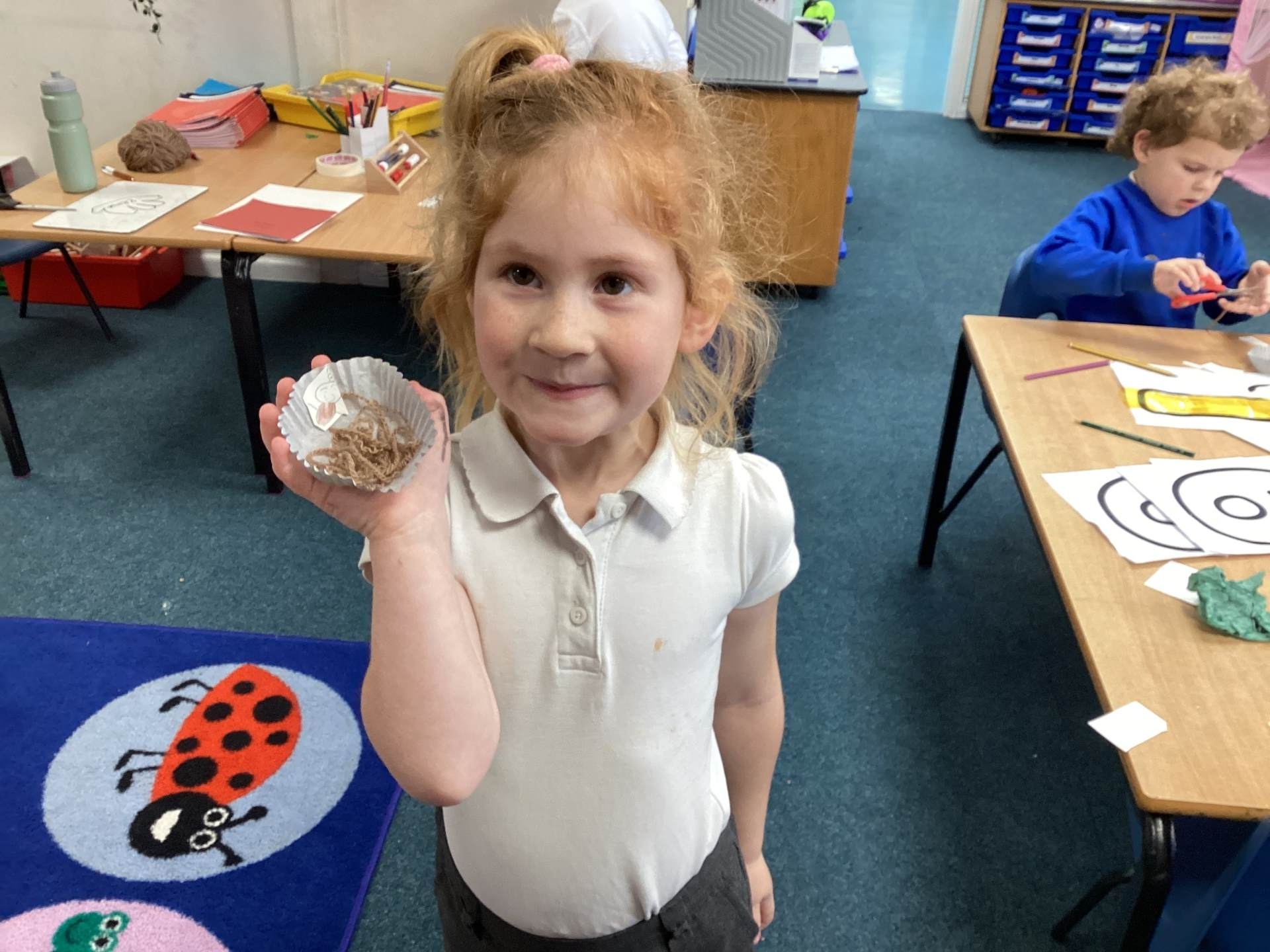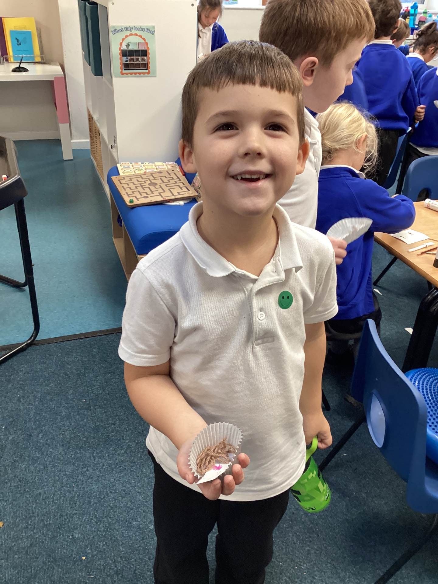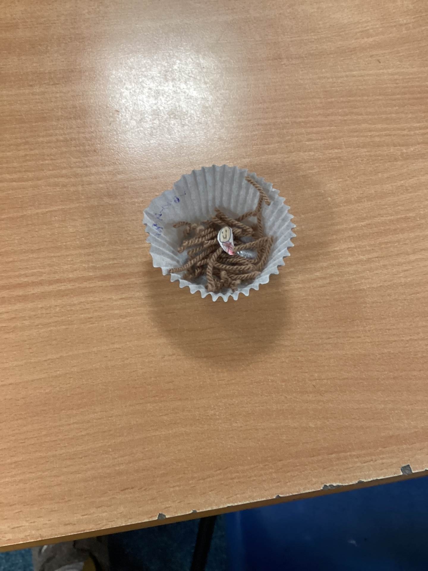 Then, in RE, we continued learning all about Moses – who he was, what he did around 4,000 years ago and how he helped his people. We had lots of fun making our own baby Moses in his basket. We used cupcake cases for the baskets, wool for the hay (to keep baby Moses warm!) and drew our own tiny baby Moses to go inside.