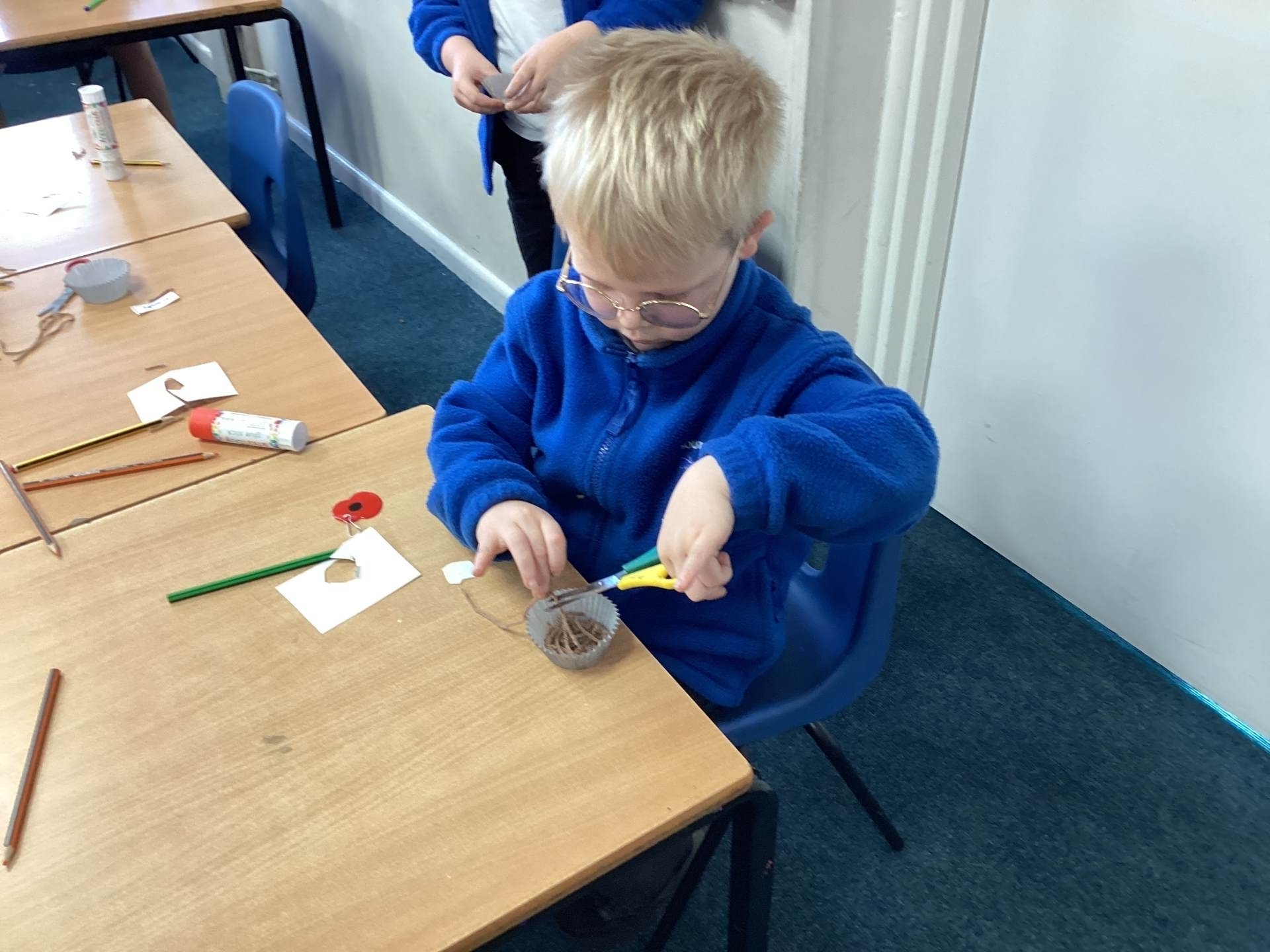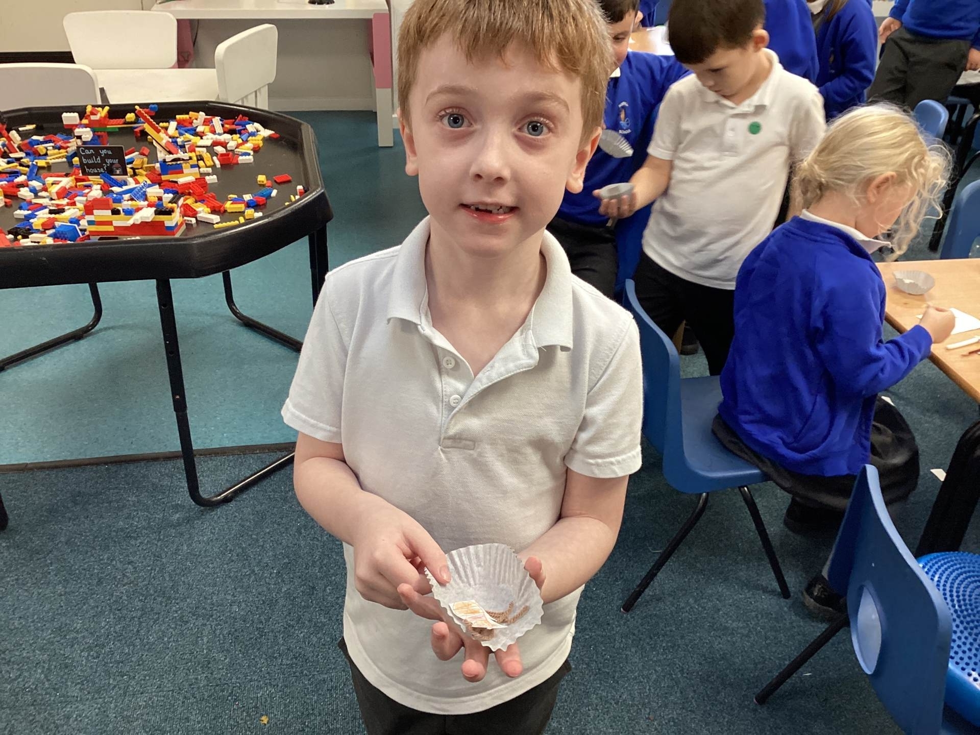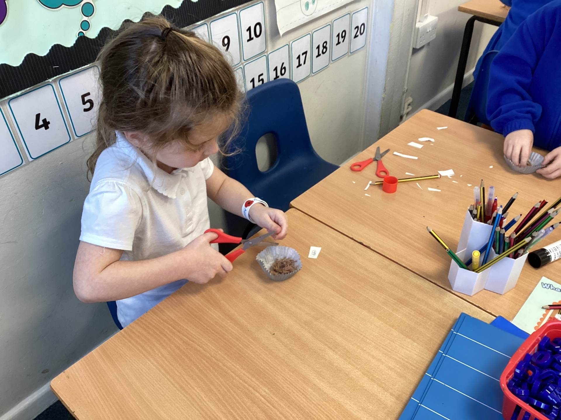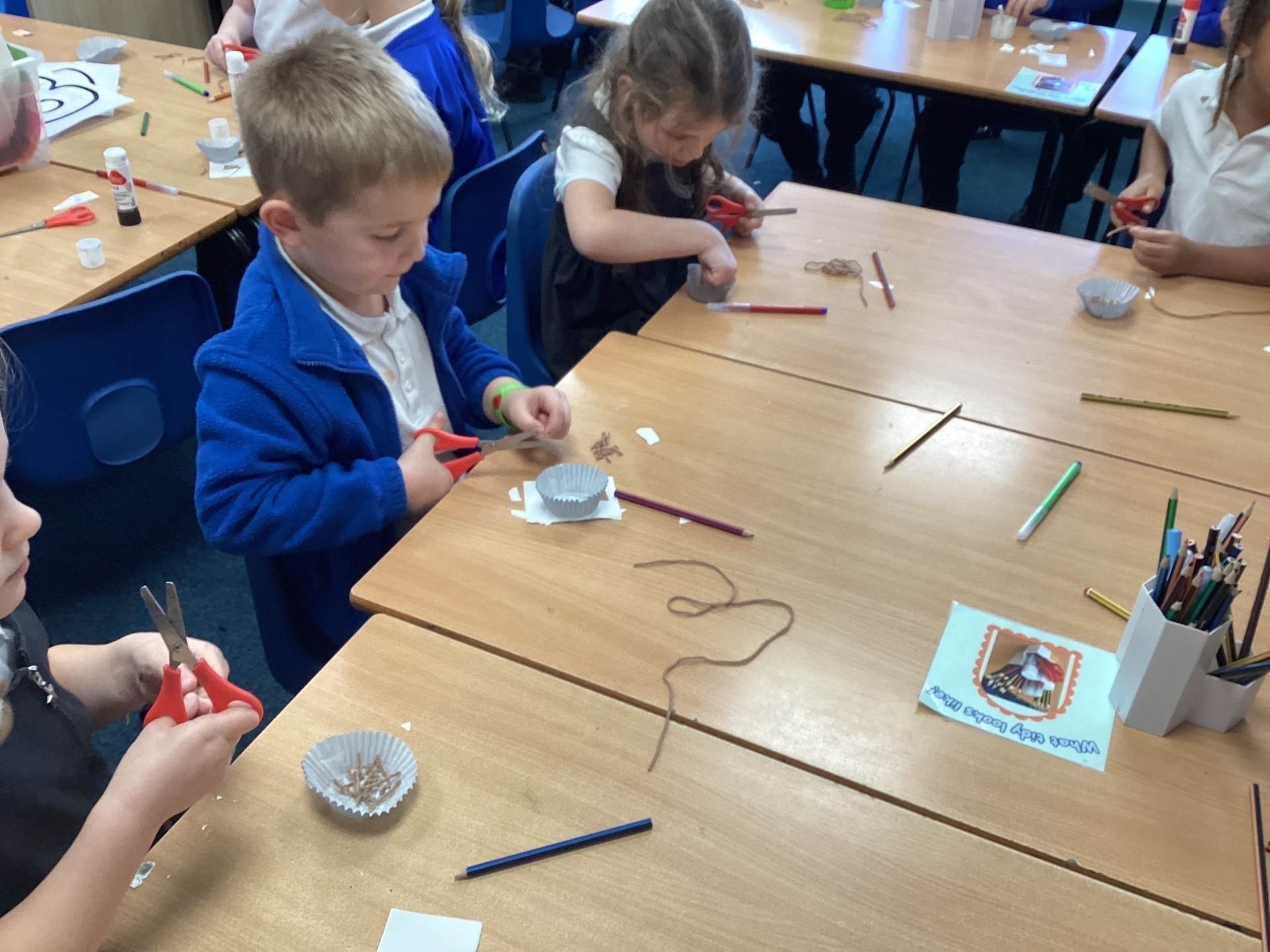 Then, in RE, we continued learning all about Moses – who he was, what he did around 4,000 years ago and how he helped his people. We had lots of fun making our own baby Moses in his basket. We used cupcake cases for the baskets, wool for the hay (to keep baby Moses warm!) and drew our own tiny baby Moses to go inside.