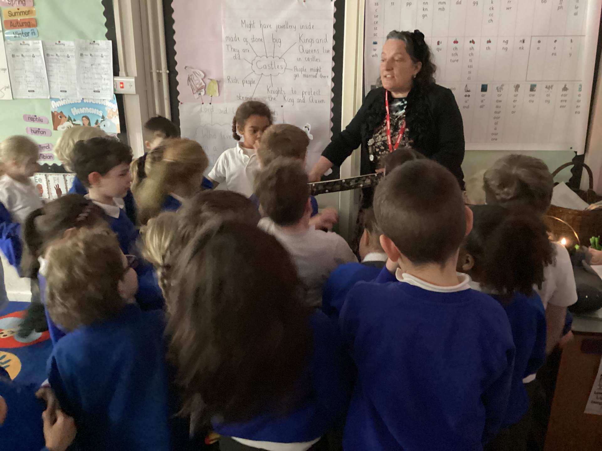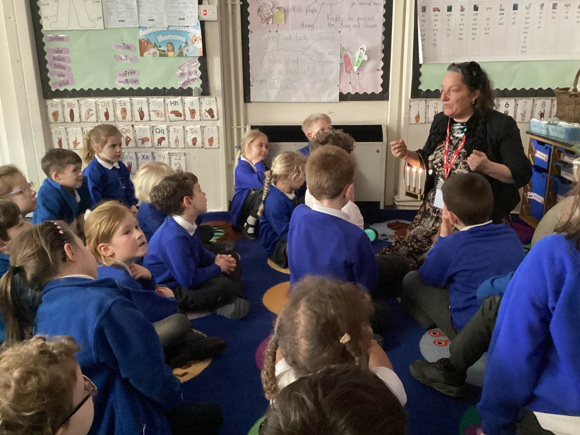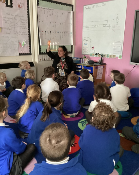 To set the scene, the lights were turned off, and the room fell into darkness, helping the children understand that Florence lived in a time before electricity. There was a sense of anticipation and curiosity as the children imagined what it must have been like. Suddenly, a soft glow appeared… Florence revealed her lamp - earning her famous title, “The Lady with the Lamp.”
