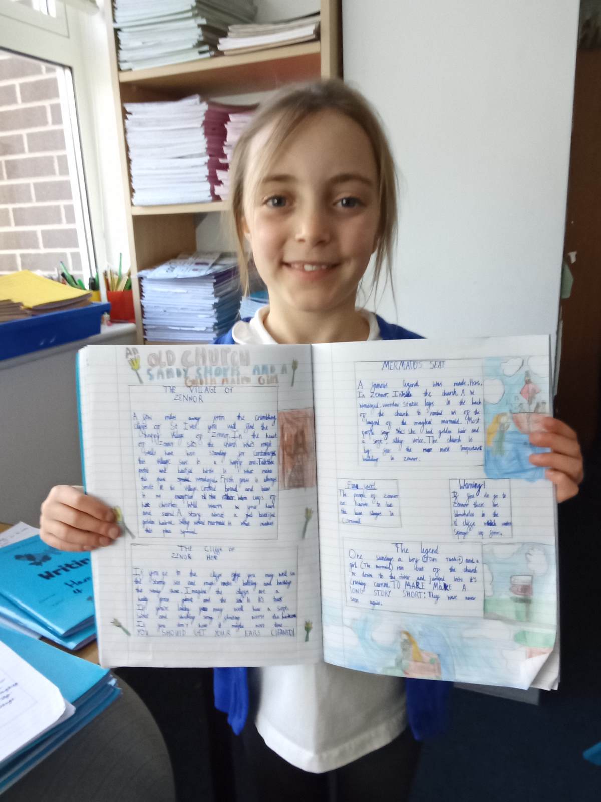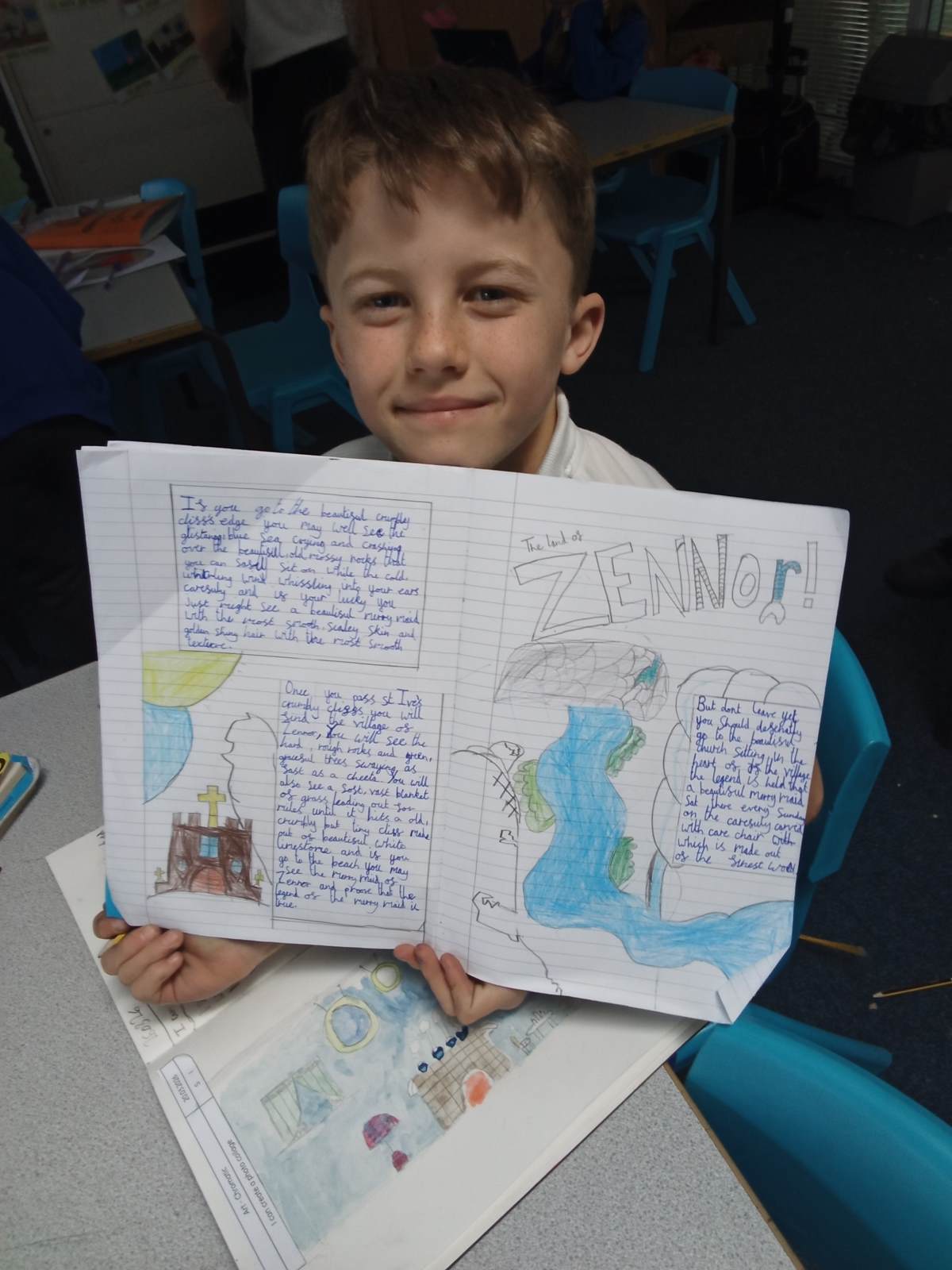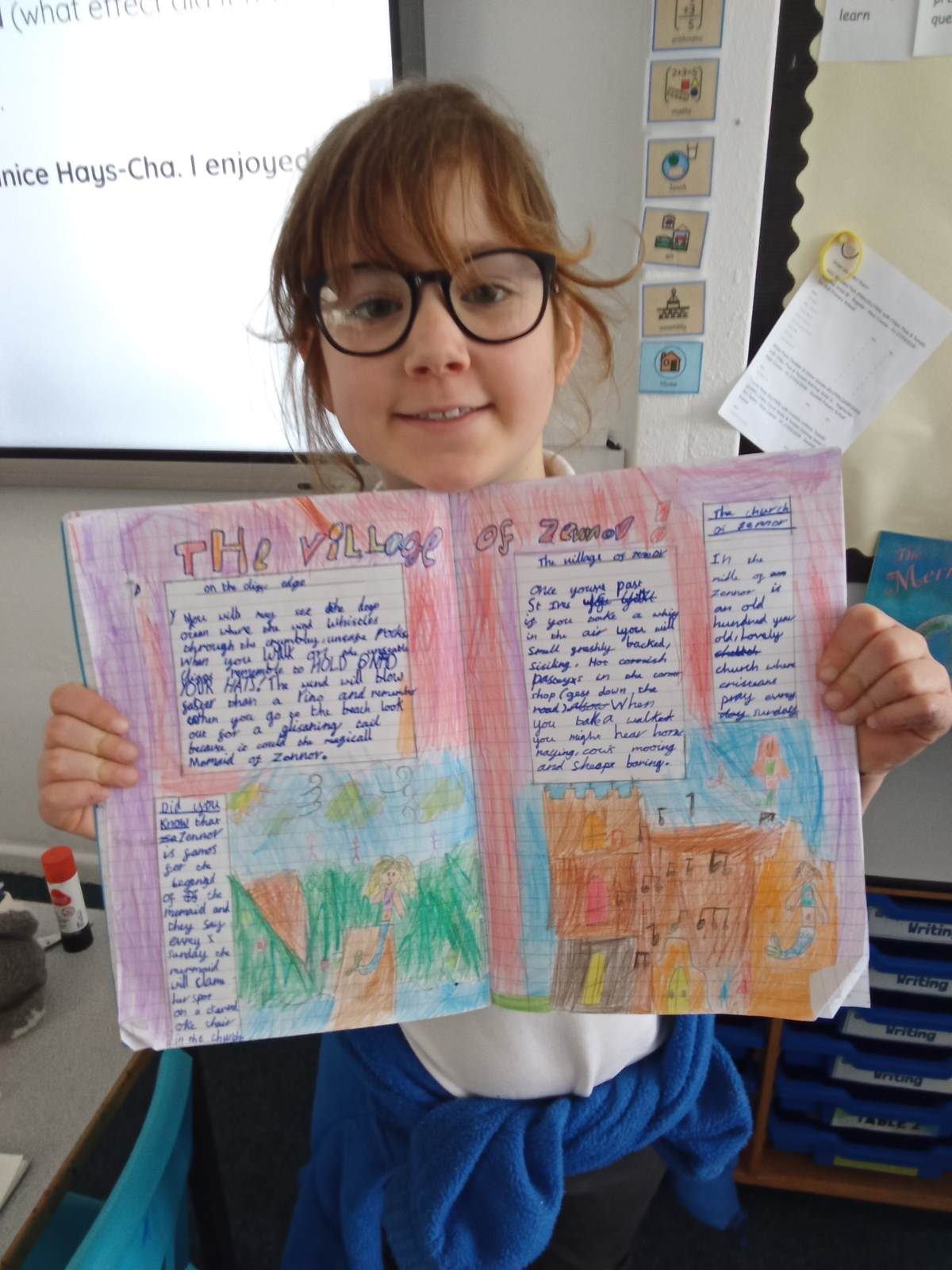 Inspired by the story, the children stepped into the role of tour guides, bringing the village of Zennor to life for others. They worked incredibly hard to create beautiful and persuasive tourist leaflets, encouraging visitors to explore this magical place. Their writing has been full of imagination, detail, and enthusiasm, truly reflecting their love for the legend.