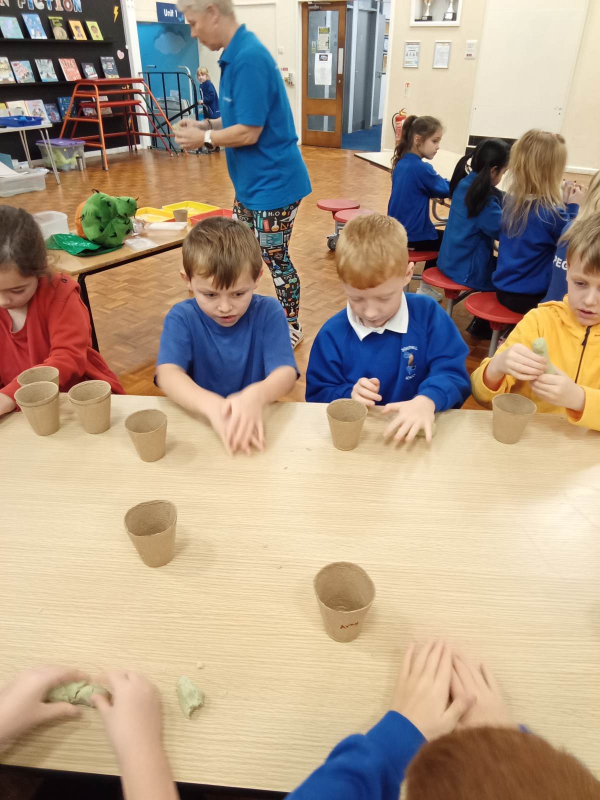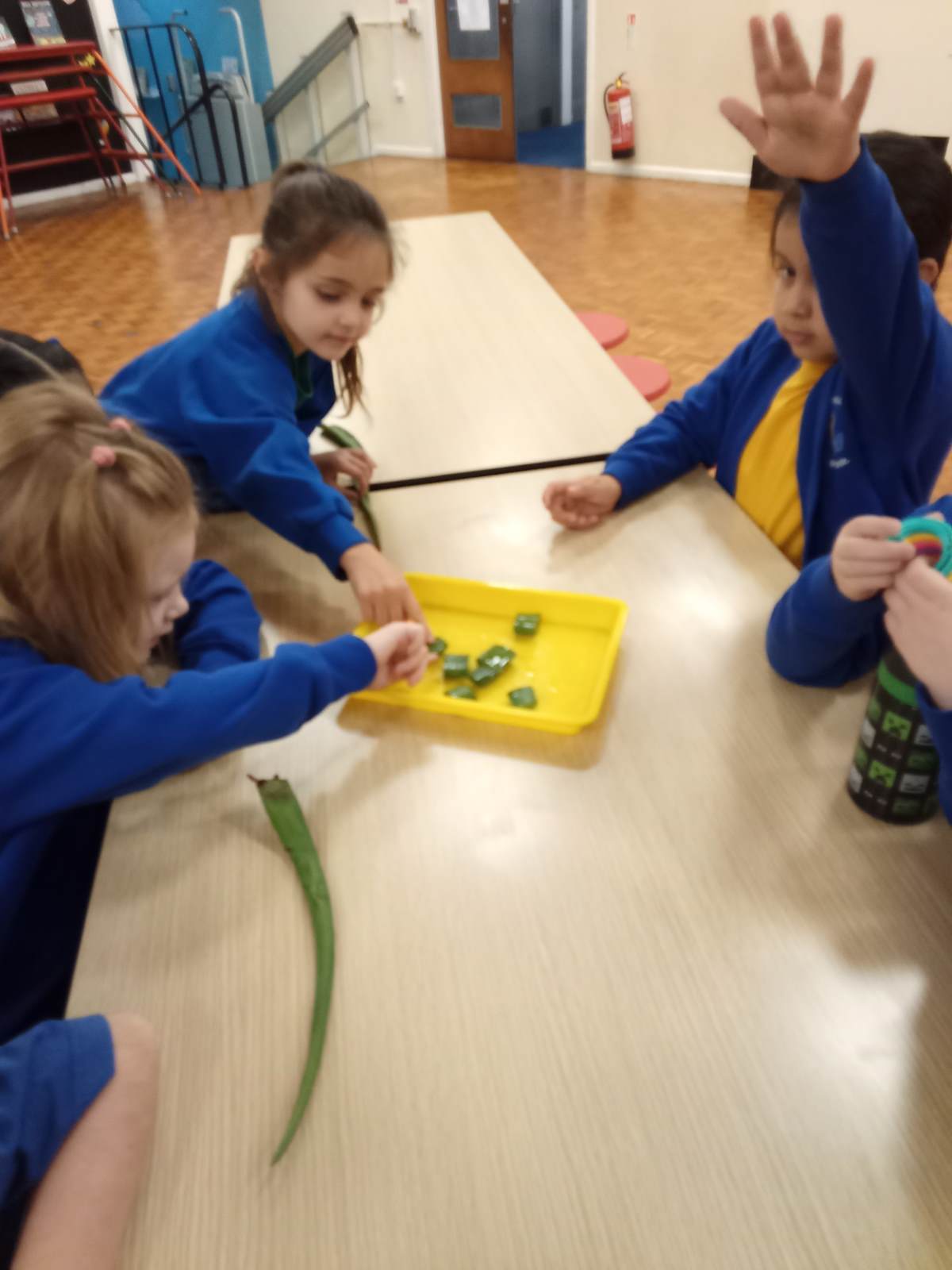 In the lesson we made our own Cacti! We learnt about how this plant is suited to its dry environment - the desert! We also talked about how it uses its thick, fleshy stem to absorb and store water and how the waxy coating on its skin reduces the loss of water in the heat.