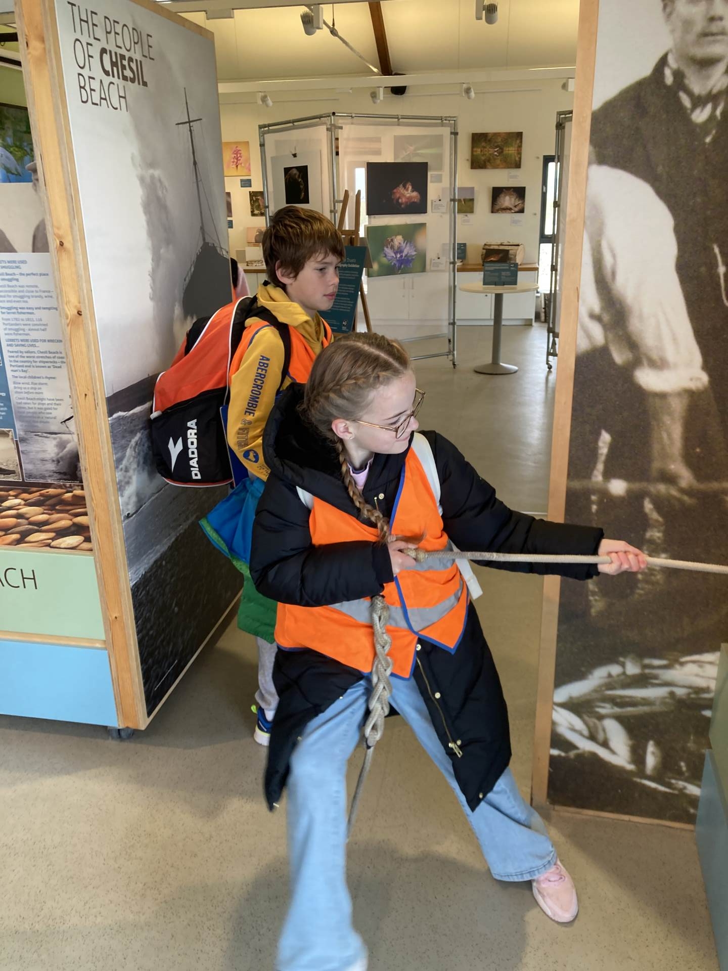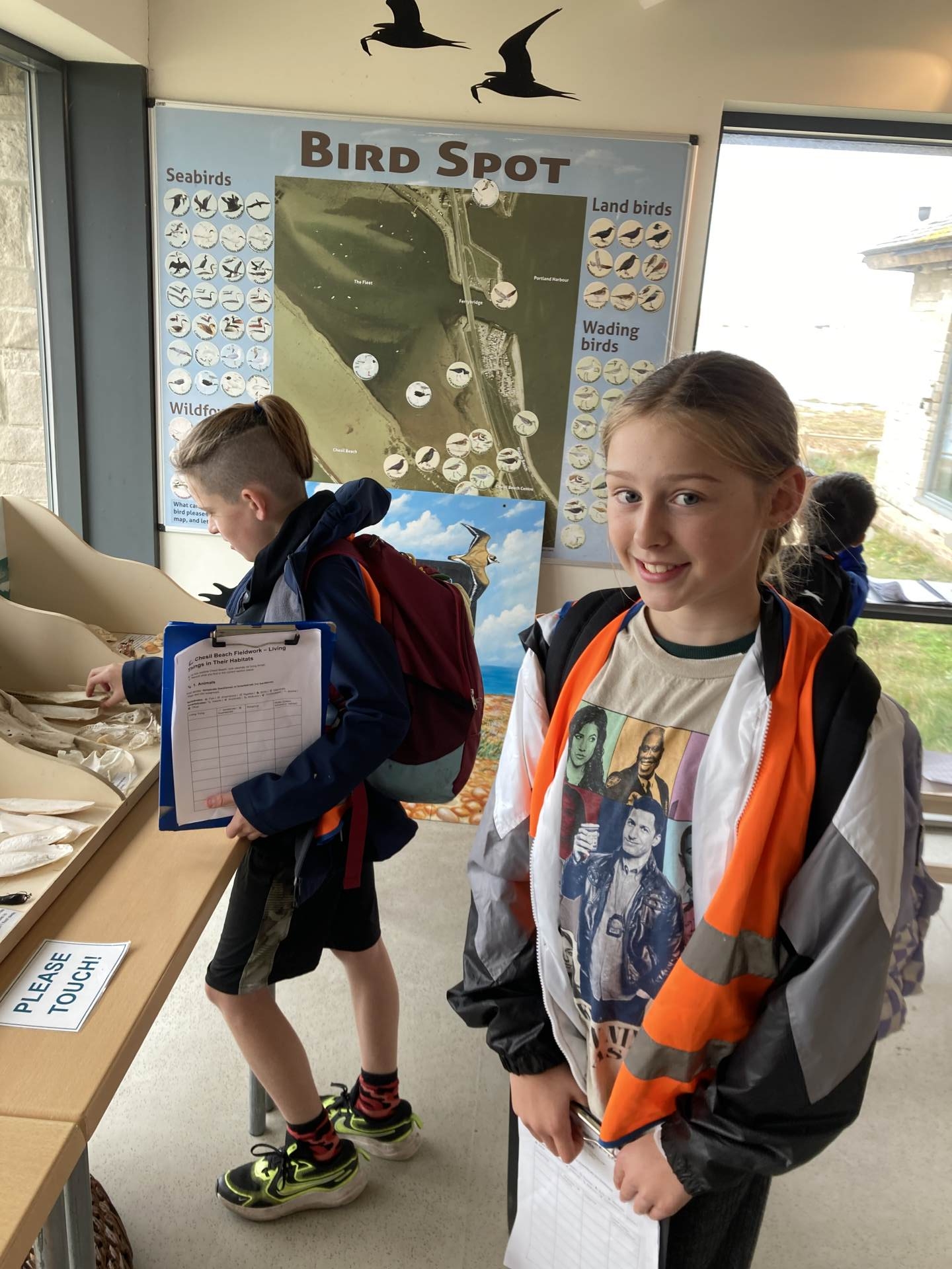 As the OTC worked with 16 pupils at a time, the class split into two groups. While one group was windsurfing, the other group went for a walk along the causeway to the Chesil Wildlife centre. This tied in perfectly with our recent science topic 'living things in their habitats', as the pupils could see the inspiring wildlife photography and fascinating displays in the centre. We then embarked on some fieldwork filling out a living things classification sheet as we spotted various local fauna and flora. The pupils had to decide if it was invertebrate or vertebrate, then the subgroup, and note its behaviour. Or if it was a plant, could it be categorised into flowering, fern, conifer or mosses/liverworts.