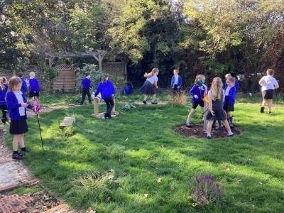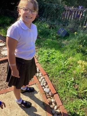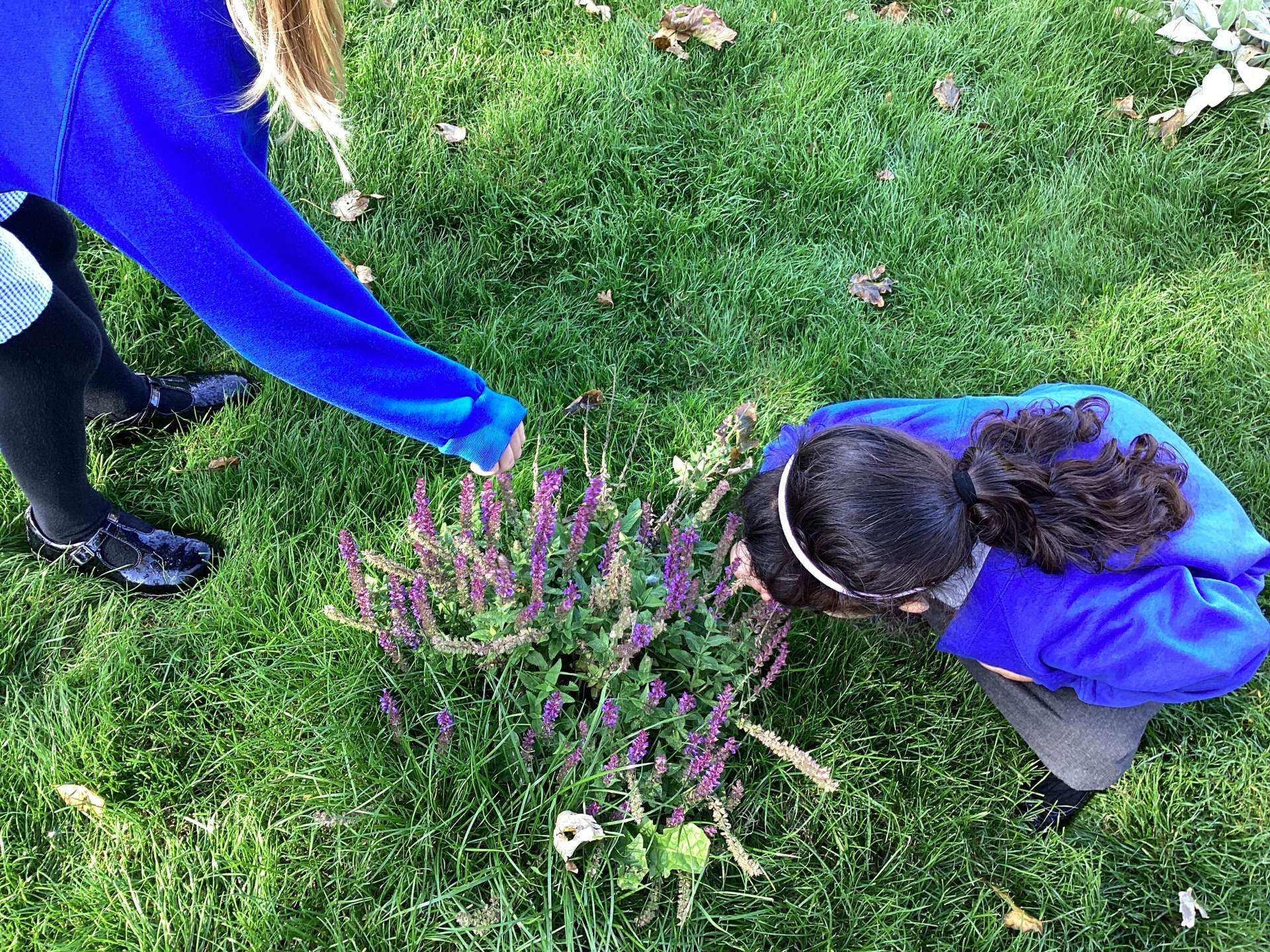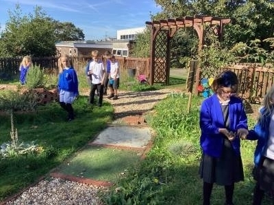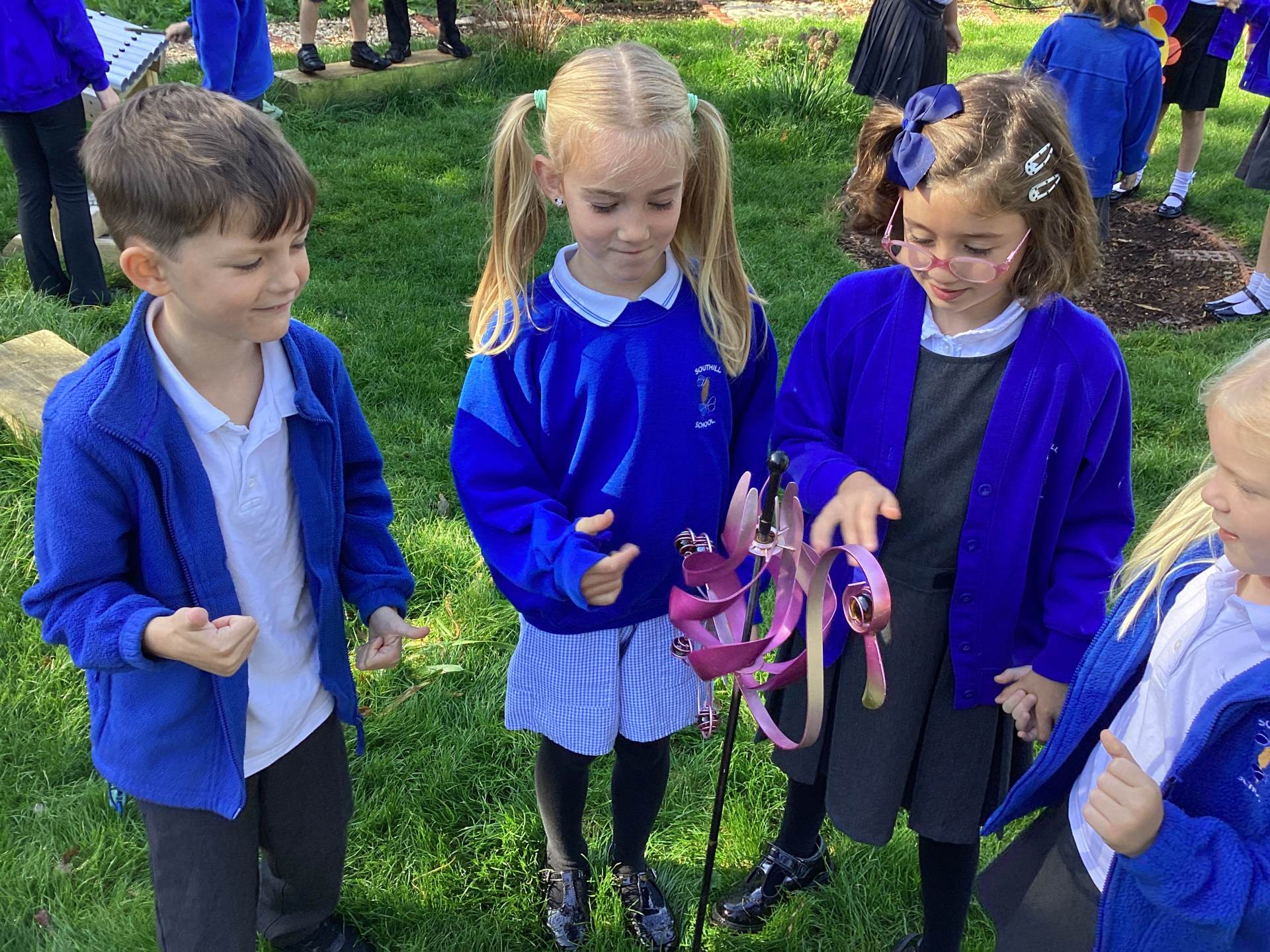 This week we enjoyed a lovely walk in our beautiful, new sensory garden. The children used their senses (except taste!) to experience all the garden has to offer. They enjoyed rubbing their fingers between the herbs and smelling the scent produced. They also enjoyed listening to the musical instruments and looking at bugs and spiders hiding under the terracotta pots! A mushroom was spotted growing in the grass too, as well as some beautiful purple flowers.